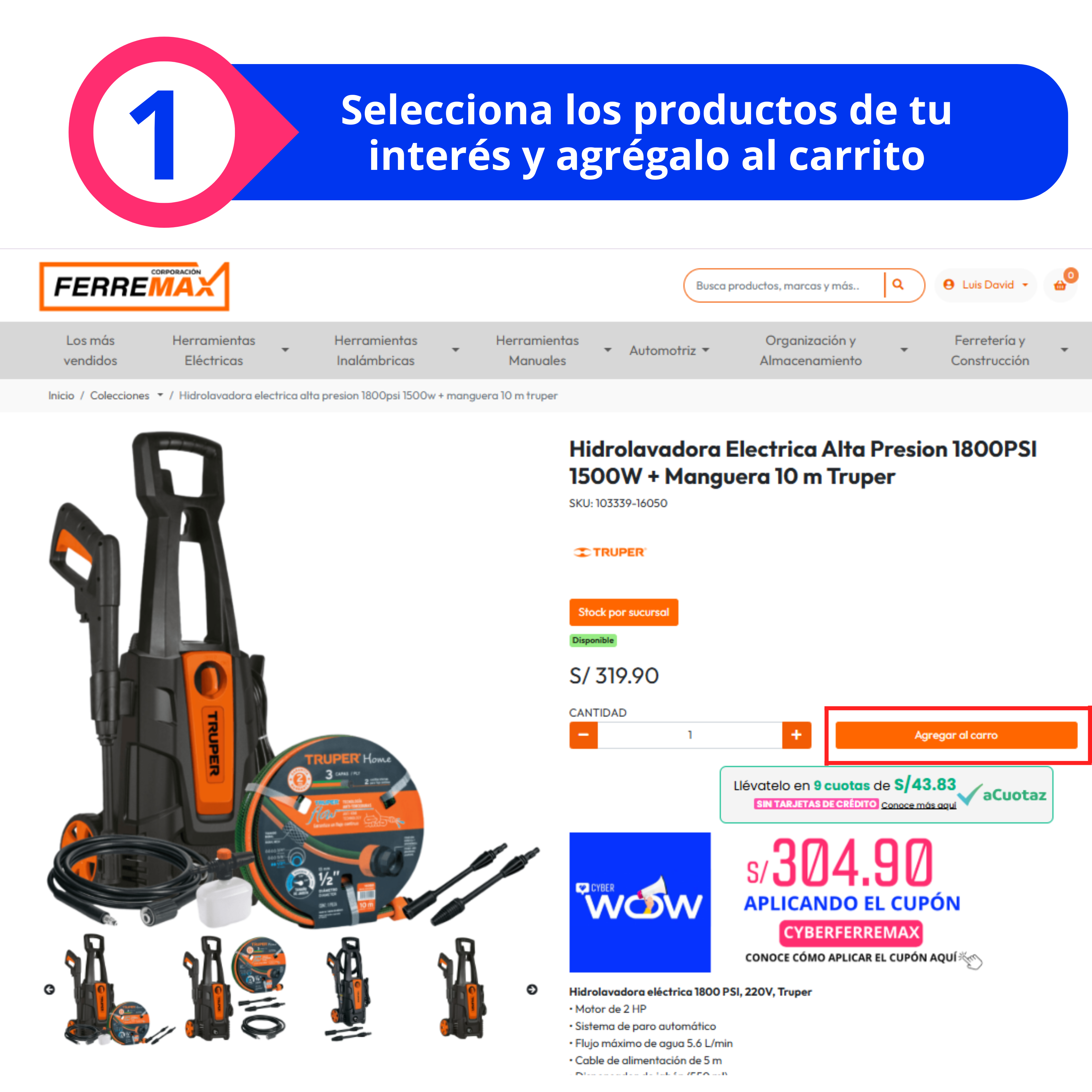 Sigue estos simples pasos para aplicar el cupón CYBERFERREMAX y aprovechar el 10% de descuento en la web