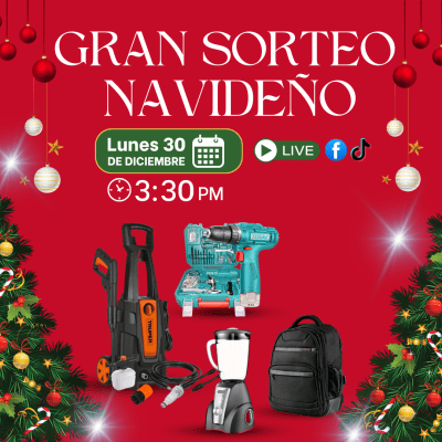 El sorteo se realizará el Lunes 30 de Diciembre del 2024 a horas 3:30 pm mediante Live Facebook y Live TikTok (Corporación FerreMax). El participante deberá darle Me Gusta al Facebook y TikTok de Corporación FerreMax para visualizar el Live. El link de nuestro Facebook es: https://www.facebook.com/corporacion.ferremax y link de TikTok: https://www.tiktok.com/@corporacion.ferremax