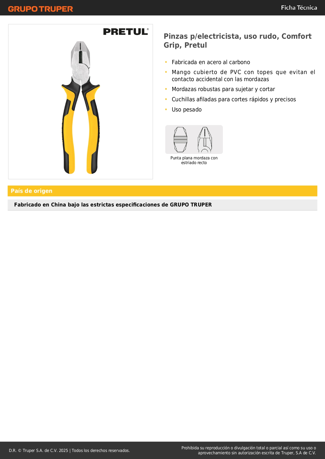 219-PX Pinza p/electricista 9' uso rudo, Comfort Grip, Pretul