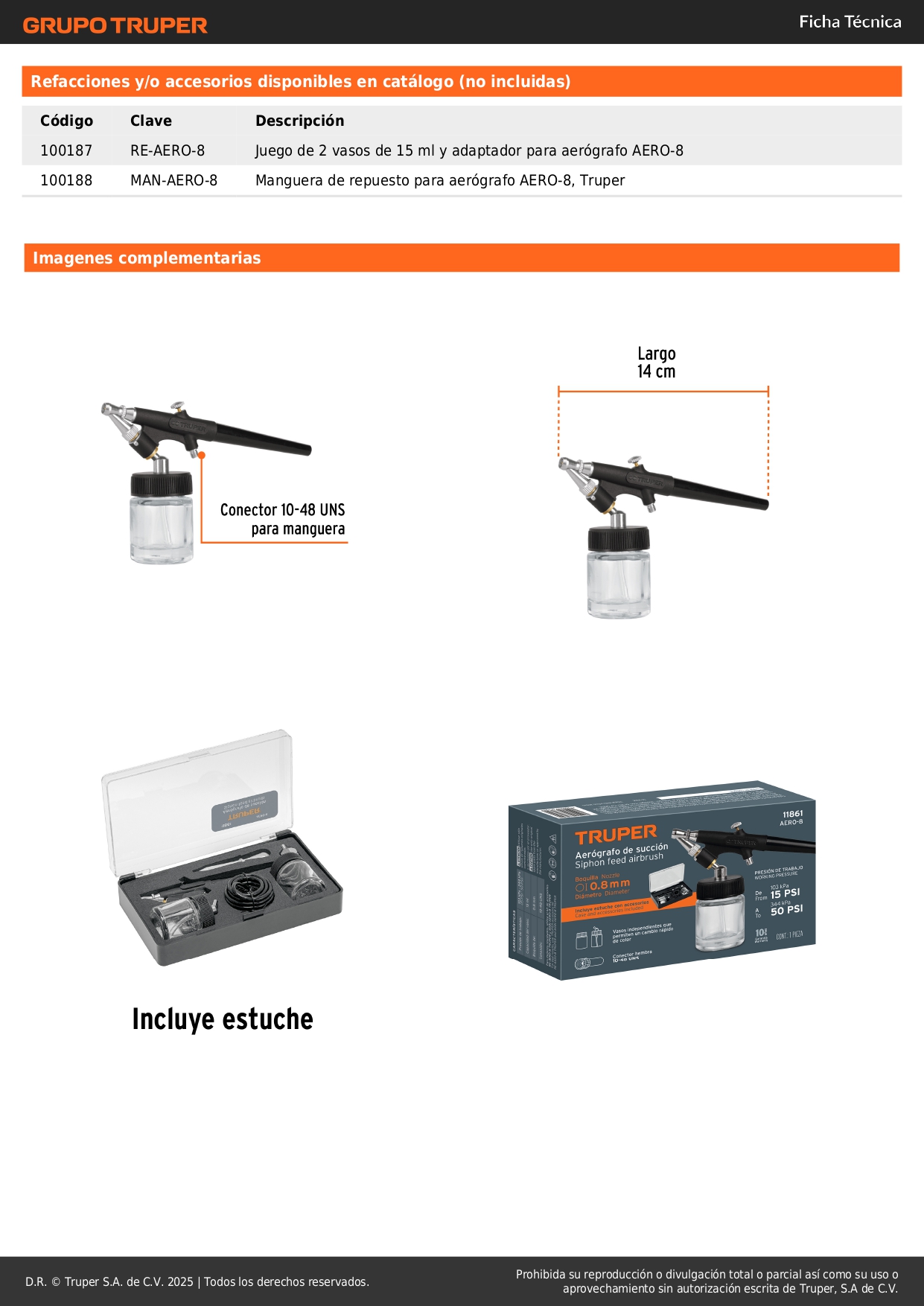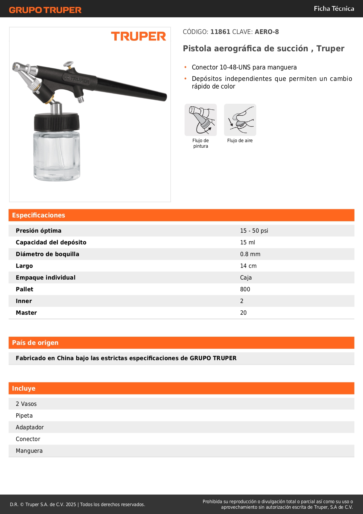 Aerógrafo de succión Boquilla de 0.8 mm Truper