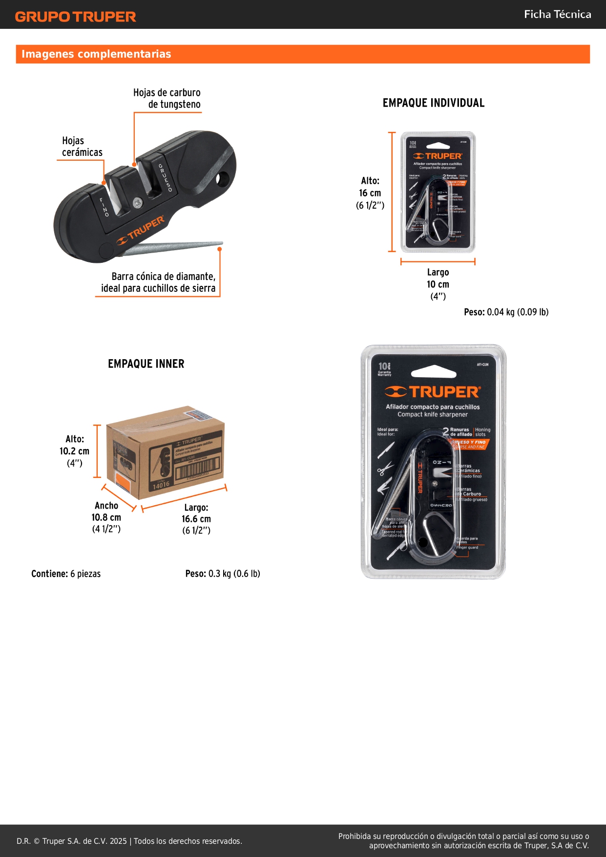 - Afilado grueso: Hojas de carburo de tungsteno, ideal para cuchillos con filo completamente desgastado.