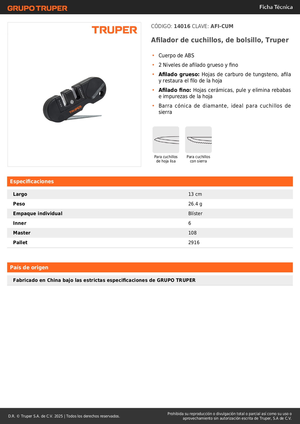 - 2 Niveles de afilado grueso y fino.