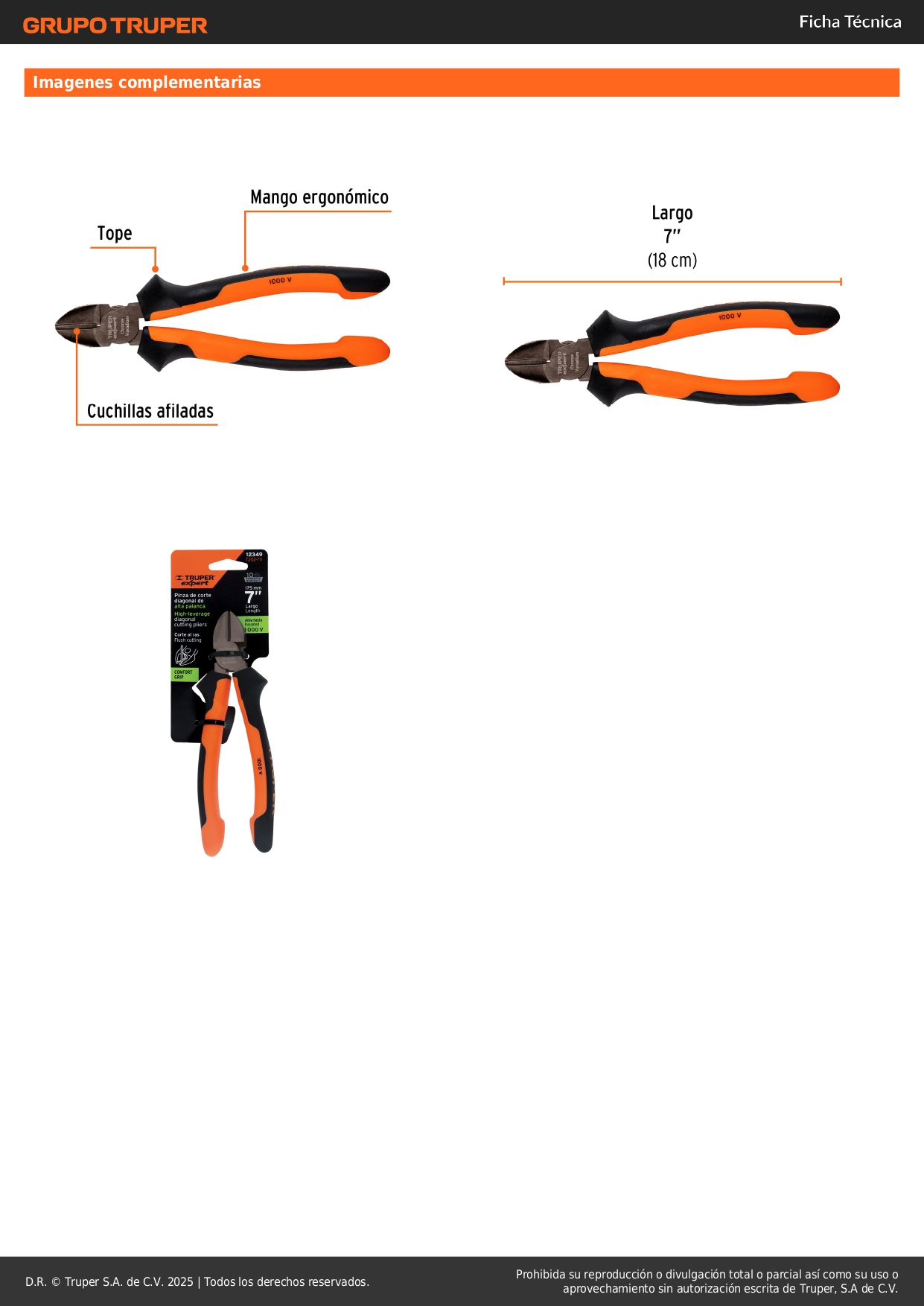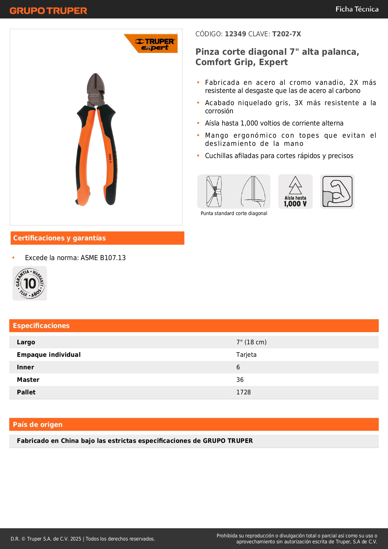 Alicate de corte diagonal 7" mango comfort grip, truper expert
