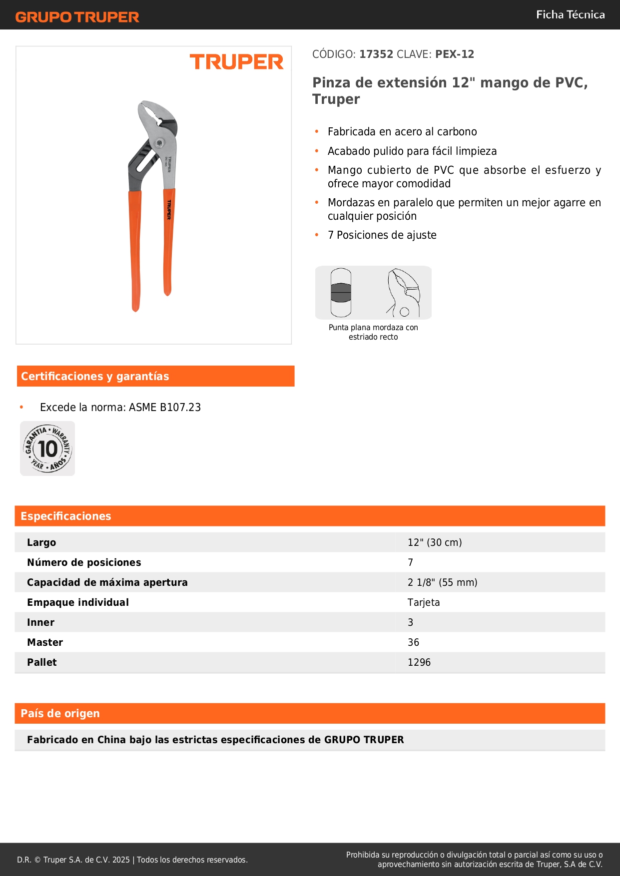 Alicate picoloro 12'' mango de pvc. truper