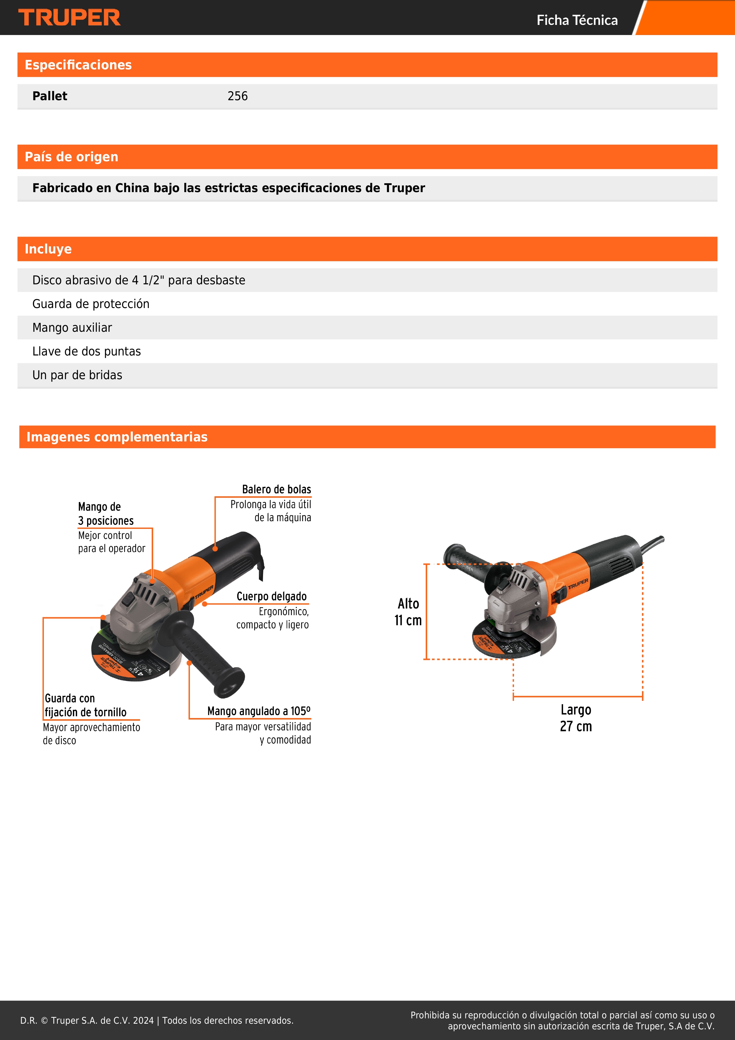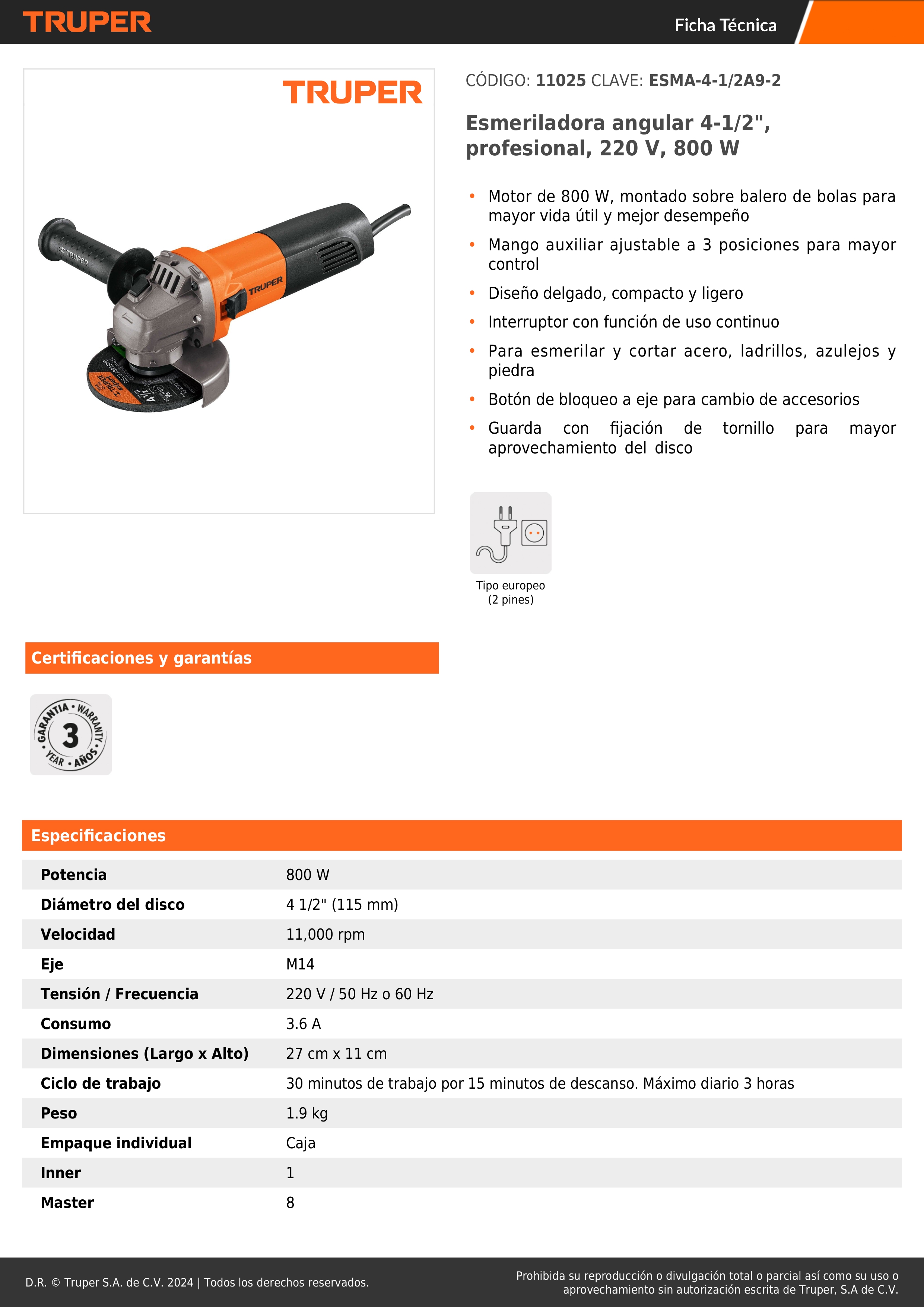 Amoladora 4 1/2" 800W Truper