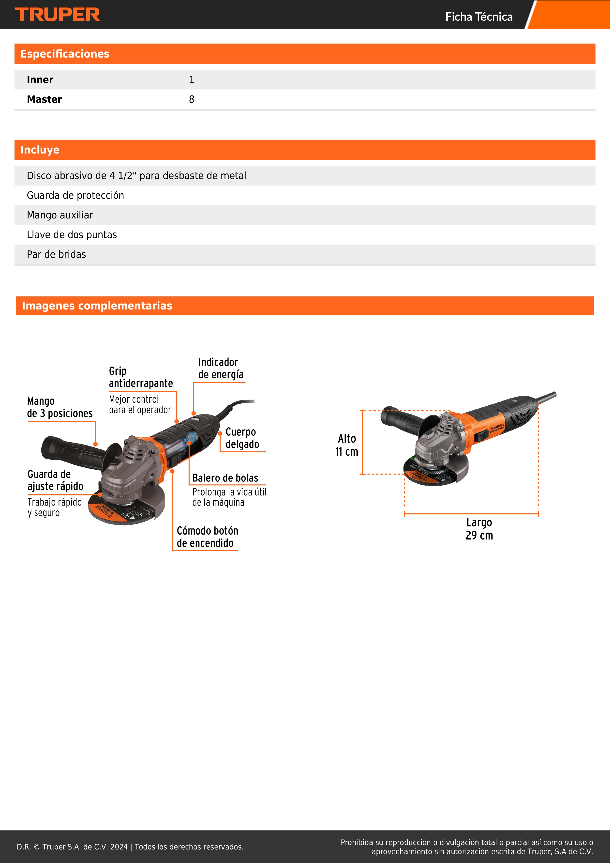 Amoladora Esmeril Angular Ergo Pro 4 ½" 850W Truper