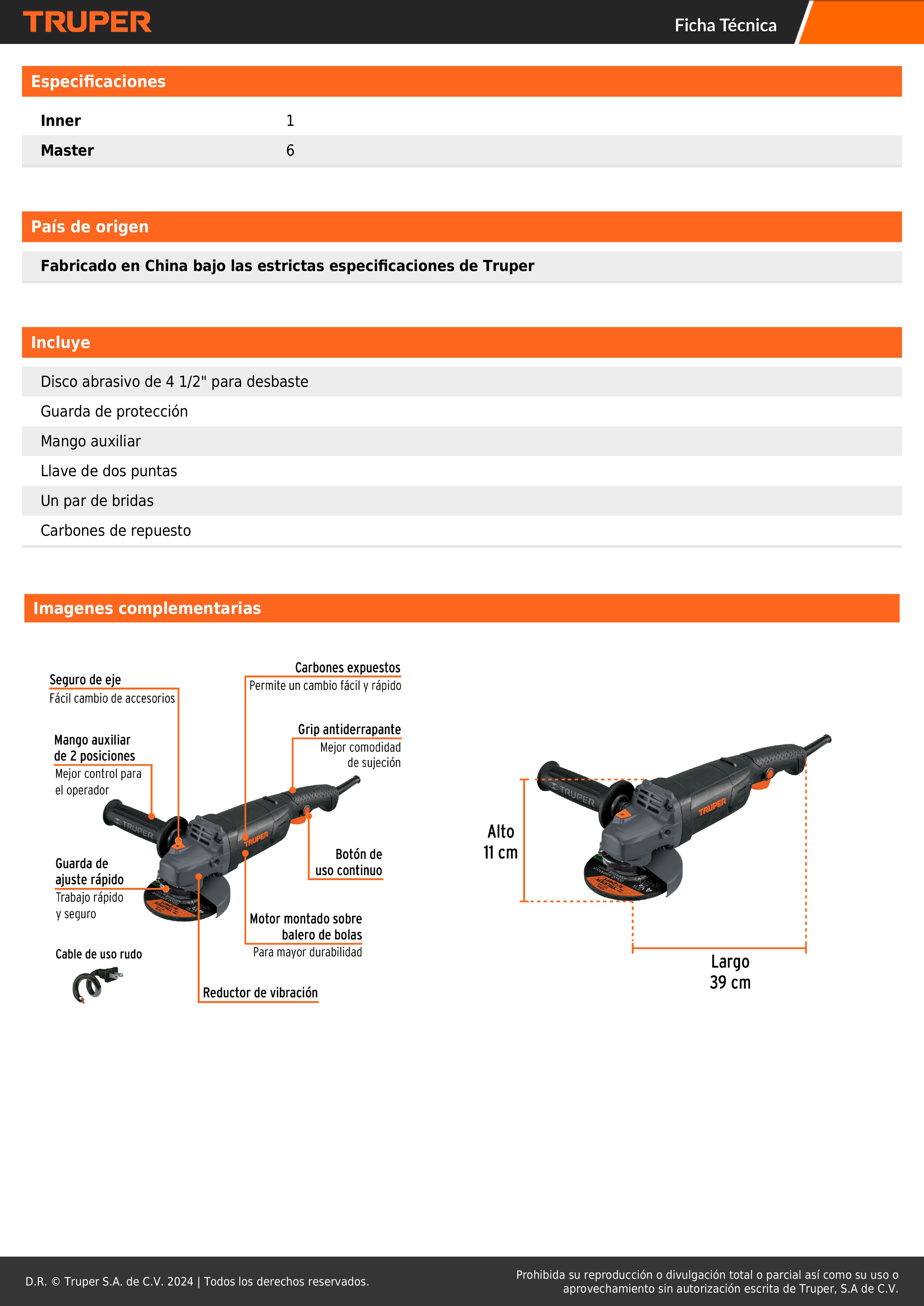 - Para esmerilar y cortar acero, tubos, hierro en ángulo, ladrillos, azulejos, piedra y/o piezas de cerámica.