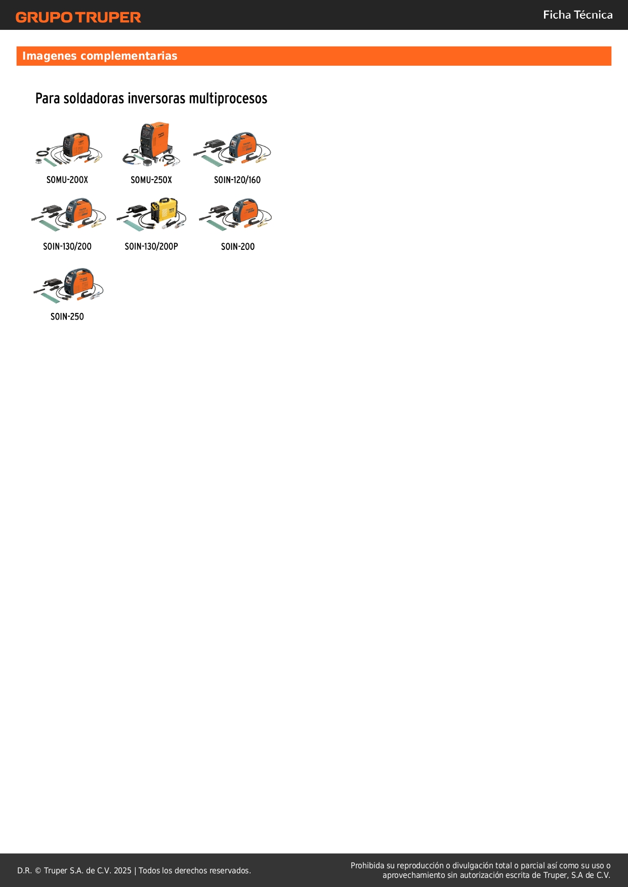 -Para soldadoras inversoras multiprocesos modelos SOMU-200X, SOMU-250X, SOIN-120/160, SOIN-130/200, SOIN-200, SOIN-250 marca TRUPER® y SOIN-130/200P marca PRETUL®