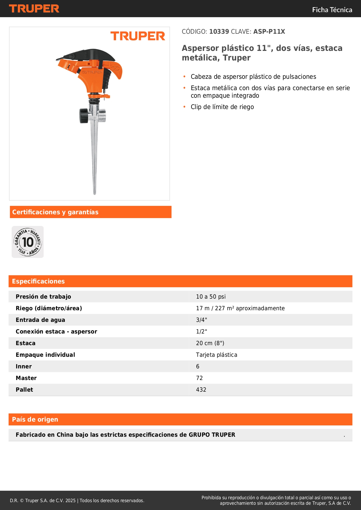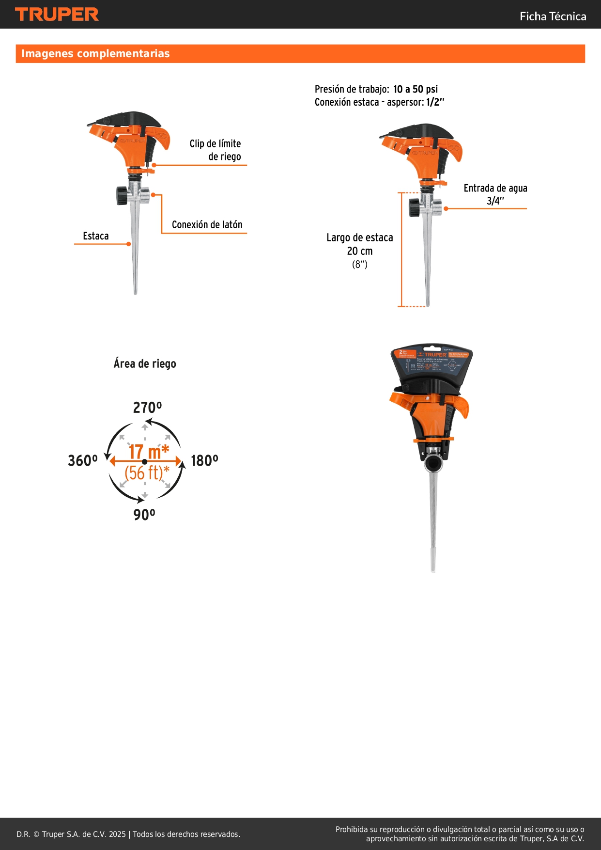 Aspersor plástico dos vías, estaca de 11´´, Truper