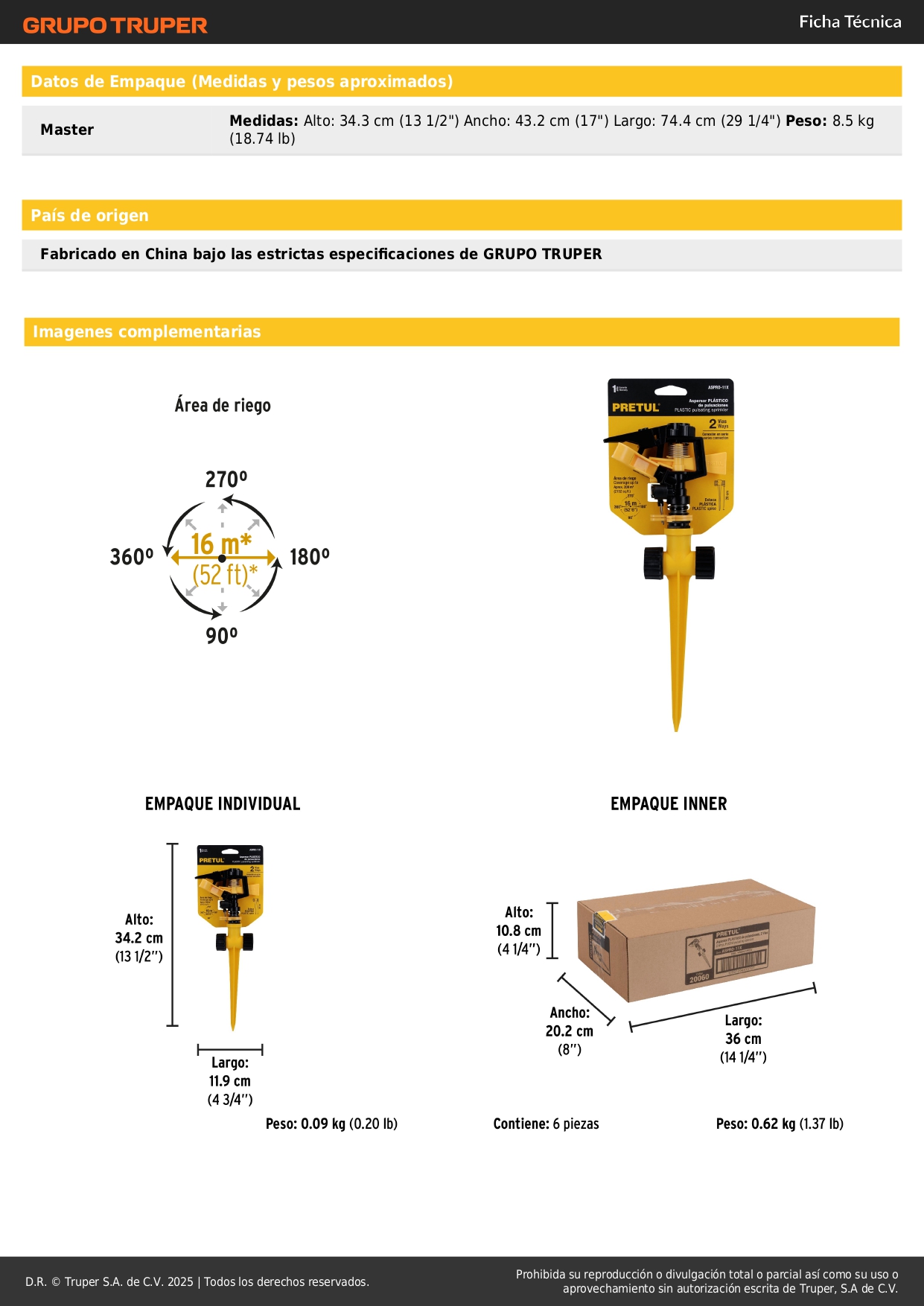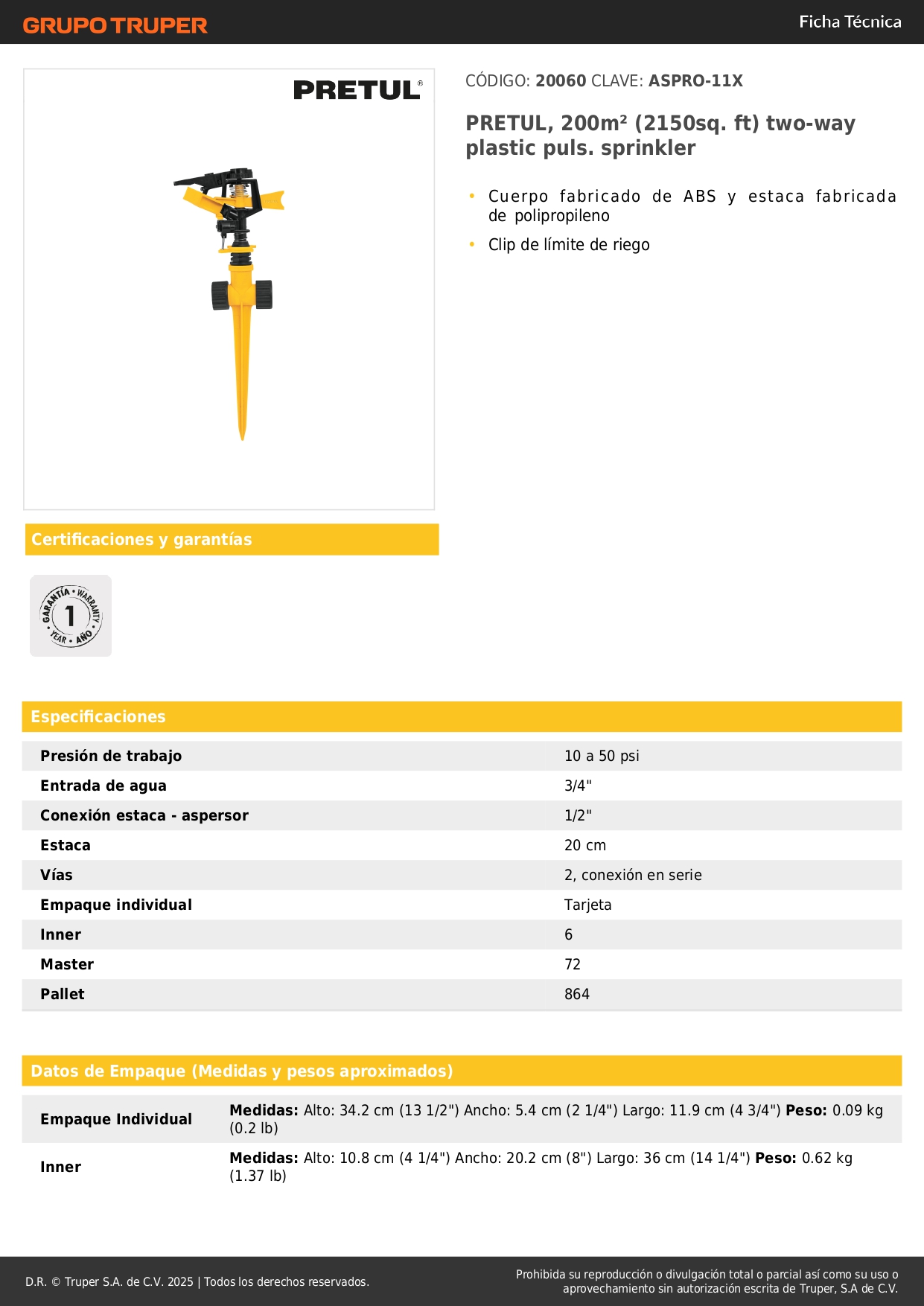 - Conexión estaca - aspersor: 1/2".