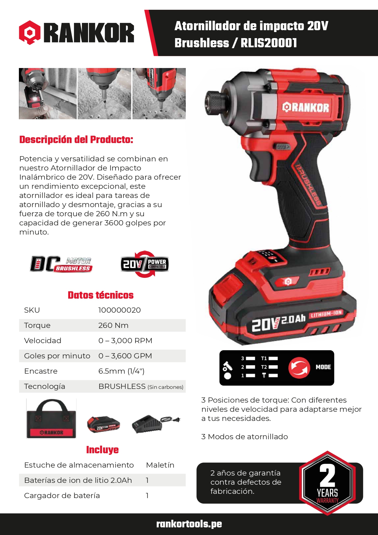 Potencia y versatilidad se combinan en nuestro Atornillador de Impacto Inalámbrico de 20V. Diseñado para ofrecer un rendimiento excepcional, este atornillador es ideal para tareas de atornillado y desmontaje, gracias a su fuerza de torque de 260 N.m y su capacidad de generar 3600 golpes por minuto.
