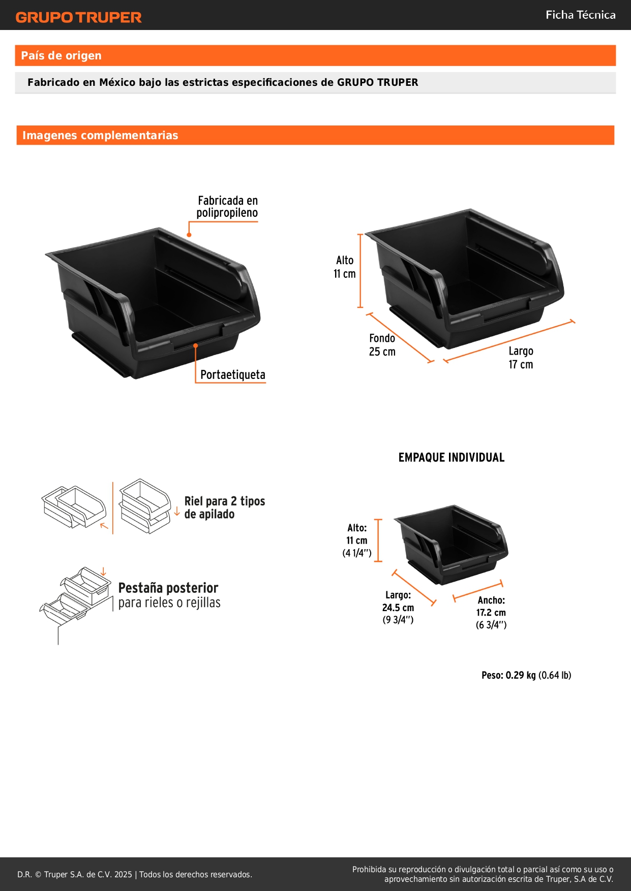 Bandeja Apilable de Plástico 25x17x11 cm Truper