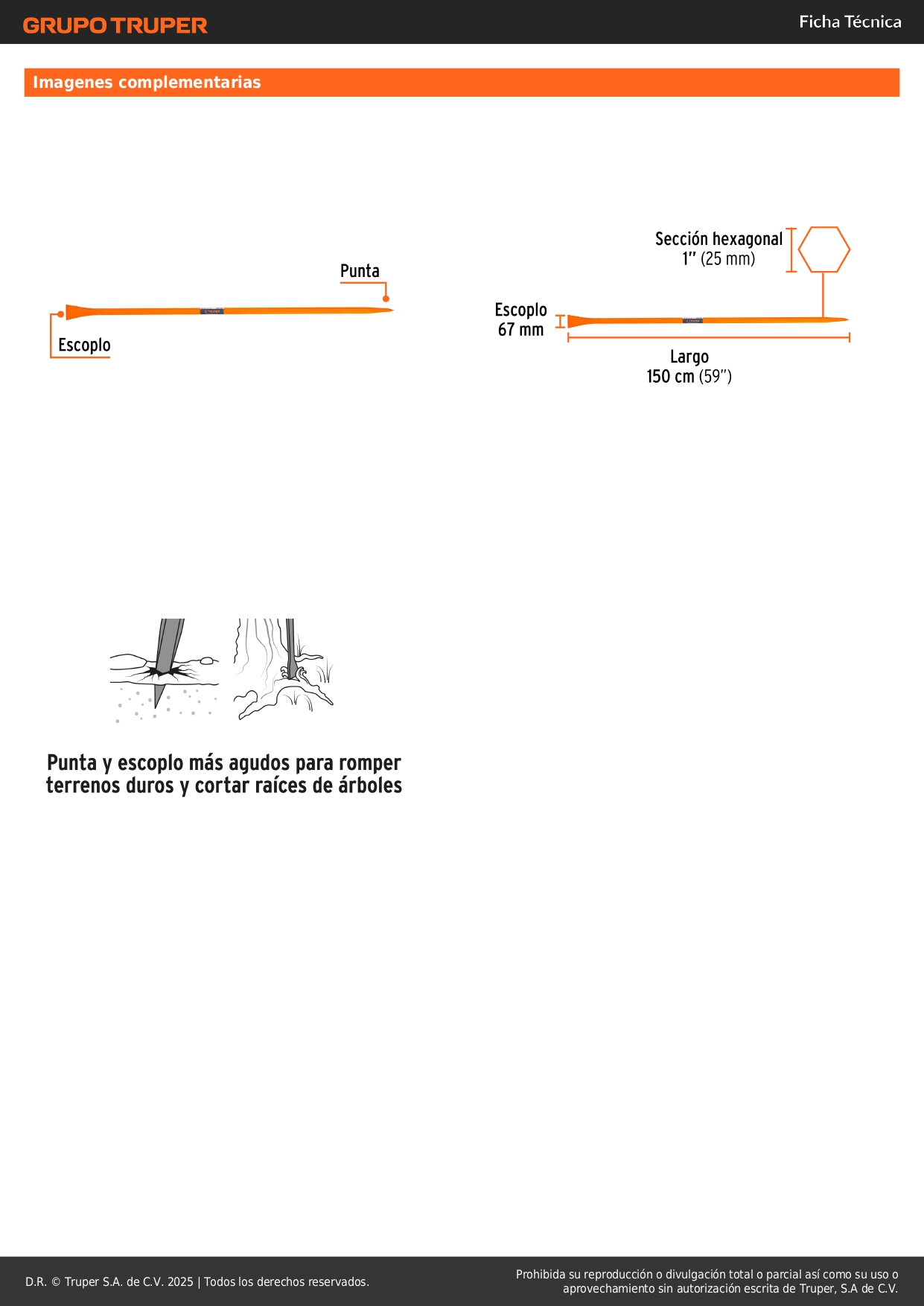 - Punta y escoplo más agudos para terrenos duros.