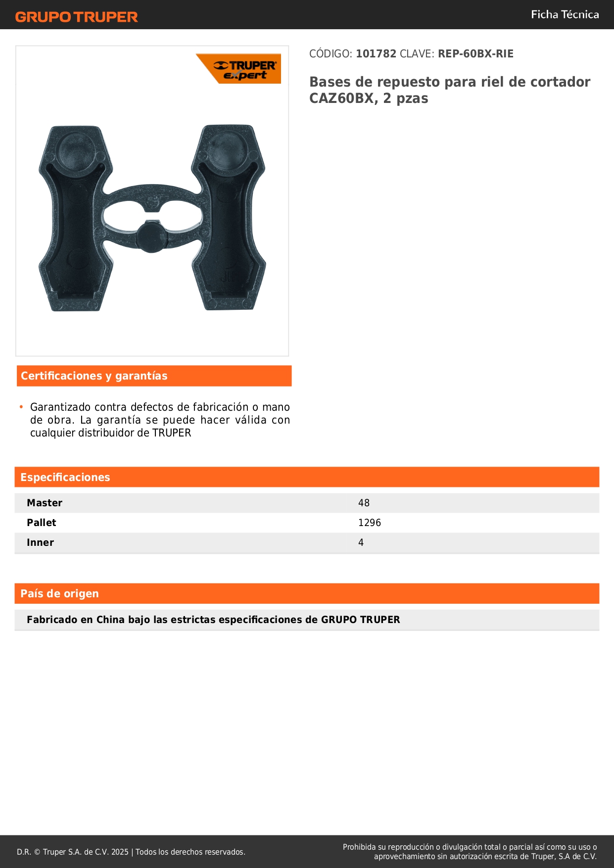 Bases de repuesto para riel de cortapisos CAZ60BX, 2 pzas Truper Stock por sucursal Stock por sucursal S/ 44.20 cantidad Agregar al carro Avísame cuando llegue Bases de repuesto para riel de cortador caz60bx, 2 pzas