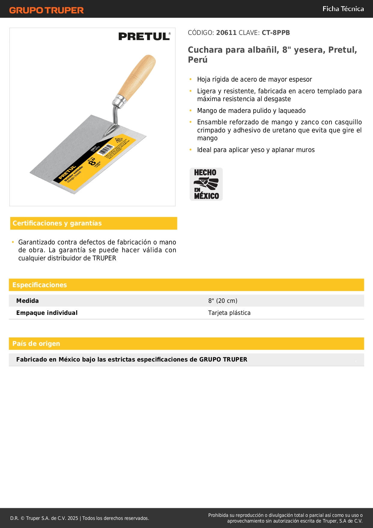 Ligera y resistente, fabricada en acero templado para máxima resistencia al desgaste.