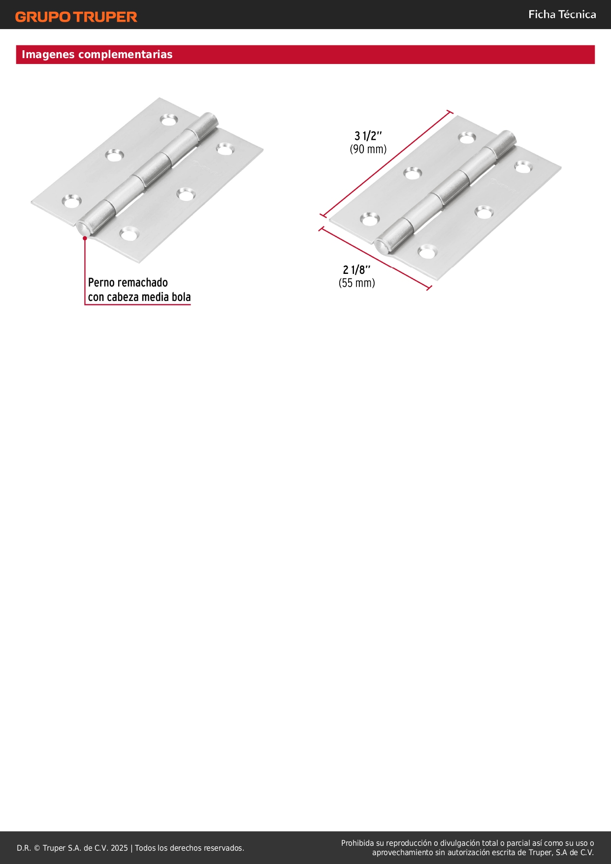 Bisagra rectangular 3-1/2´´ acero inox, cabeza media bola, Hermex (Caja de 10 unidades)
