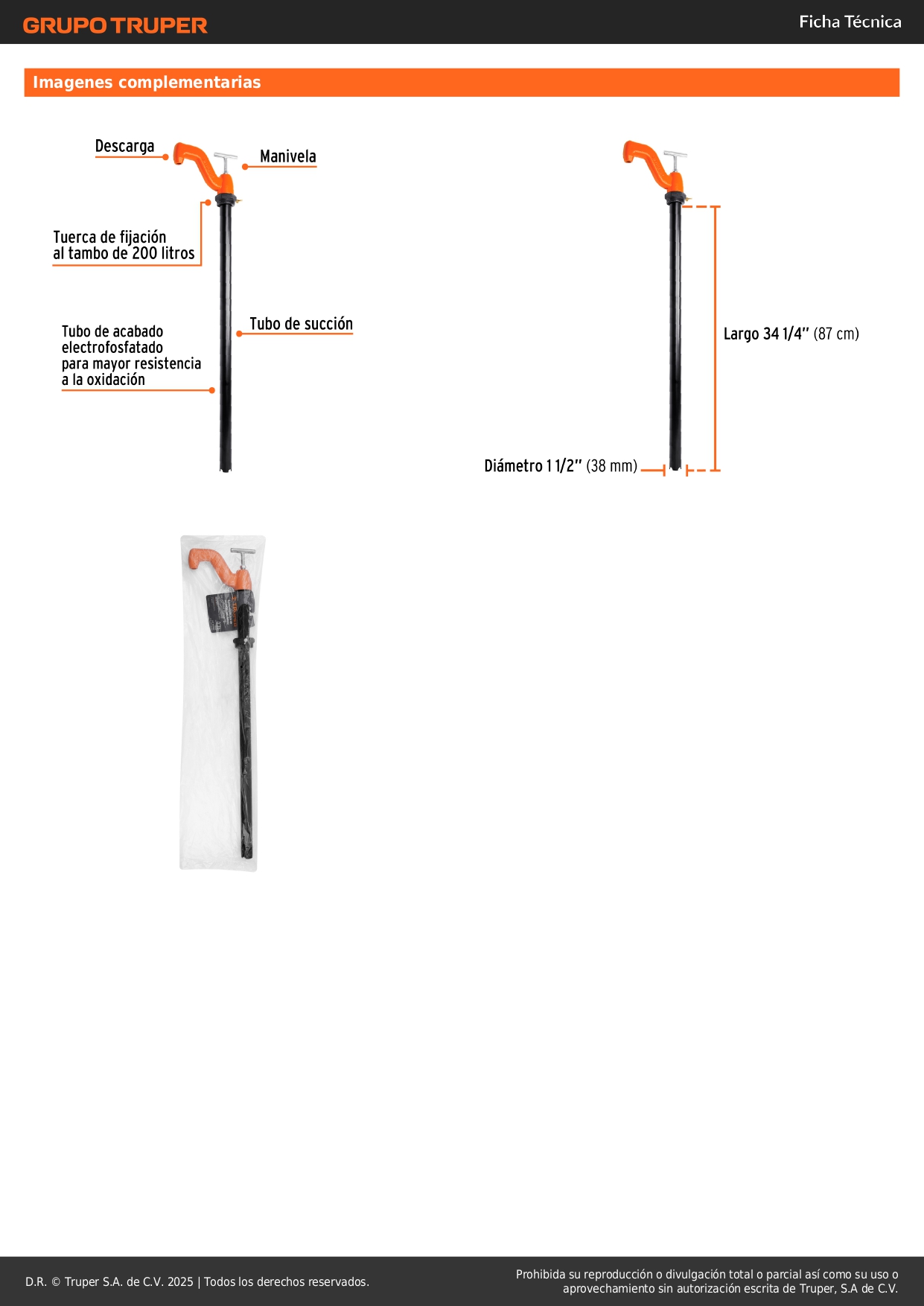 - Diámetro de tubo: 1 1/2".