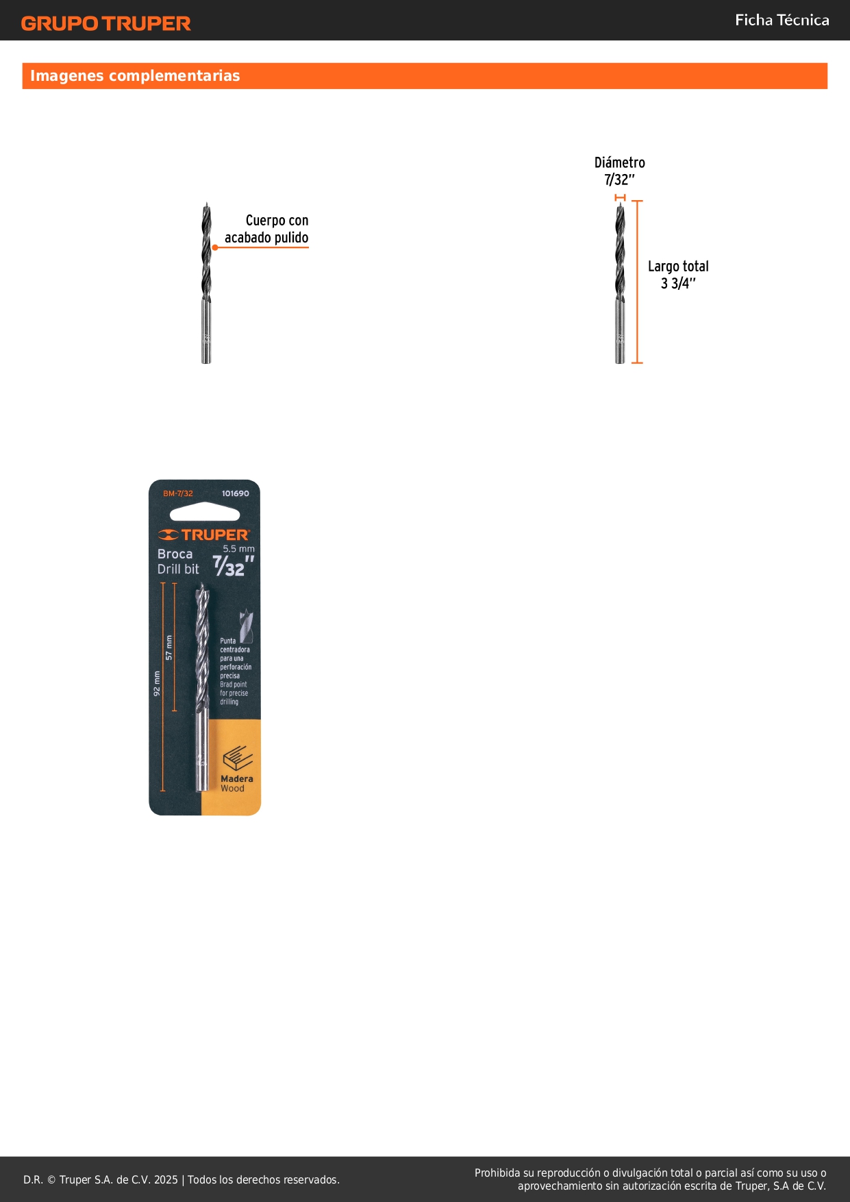 Broca con punta centradora 7/32´´ para madera, Truper