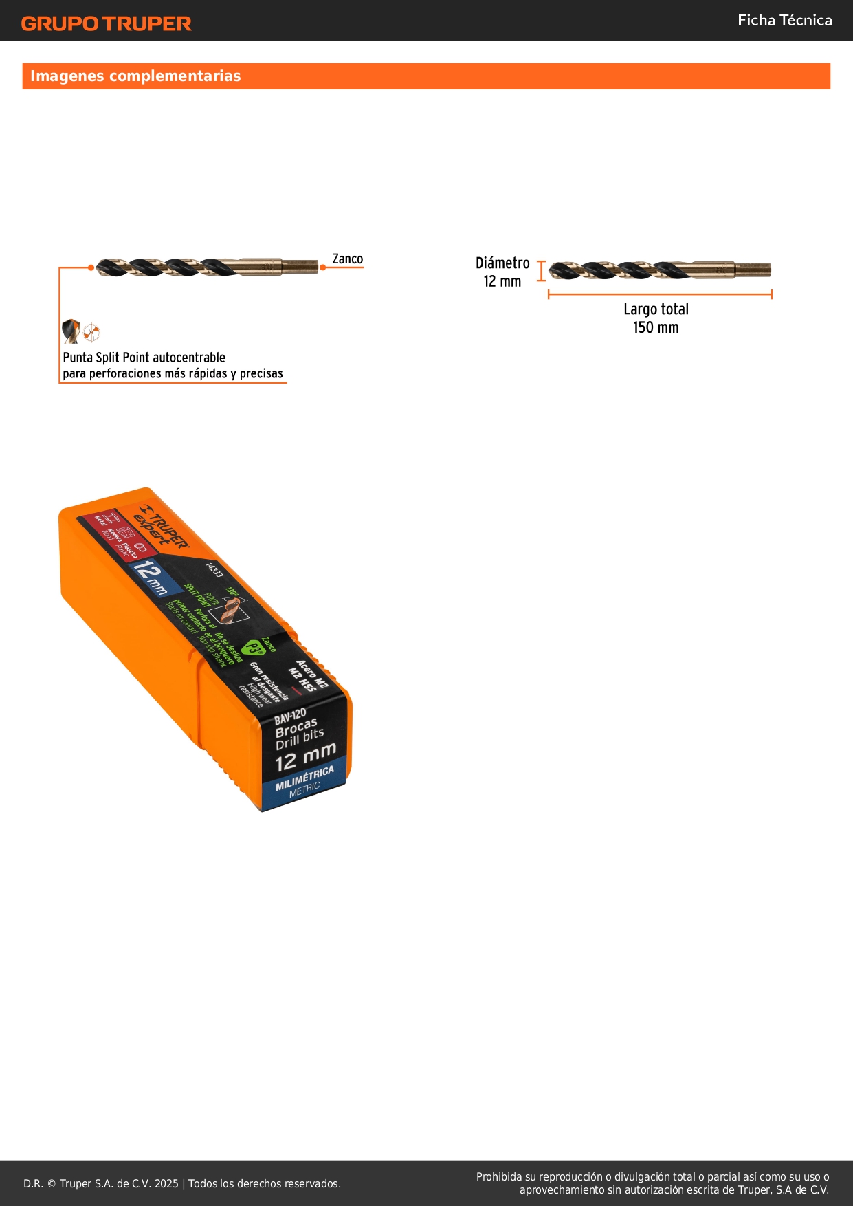 Broca HSS 12.0 mm Trugold para metal, Truper Expert por unidad