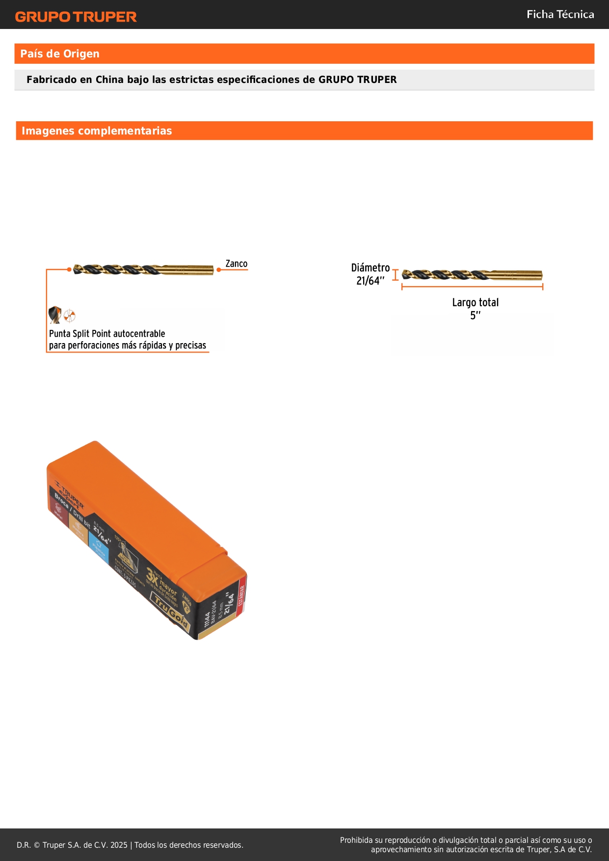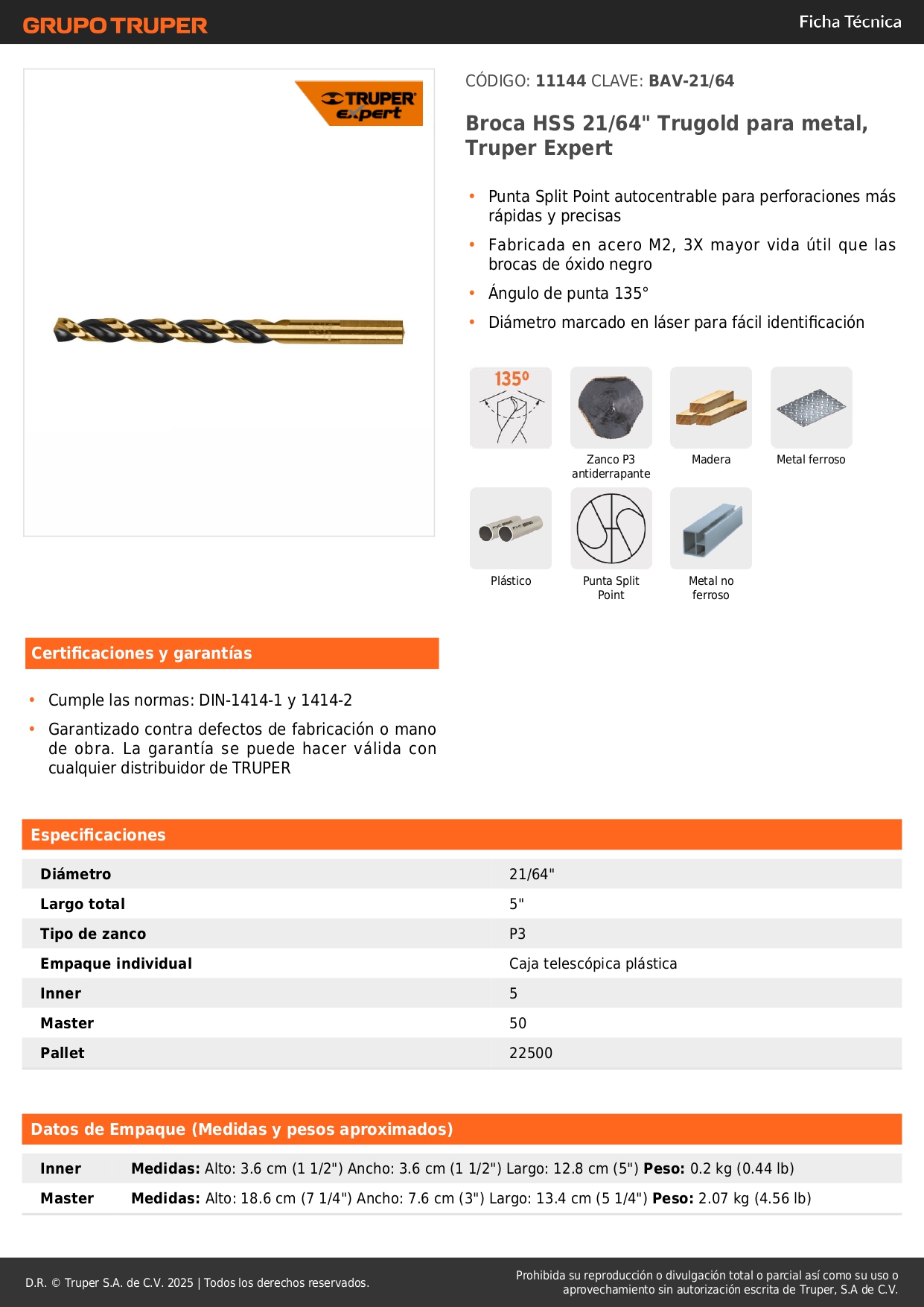 Broca HSS 21/64' Trugold para metal, Truper Expert por unidad