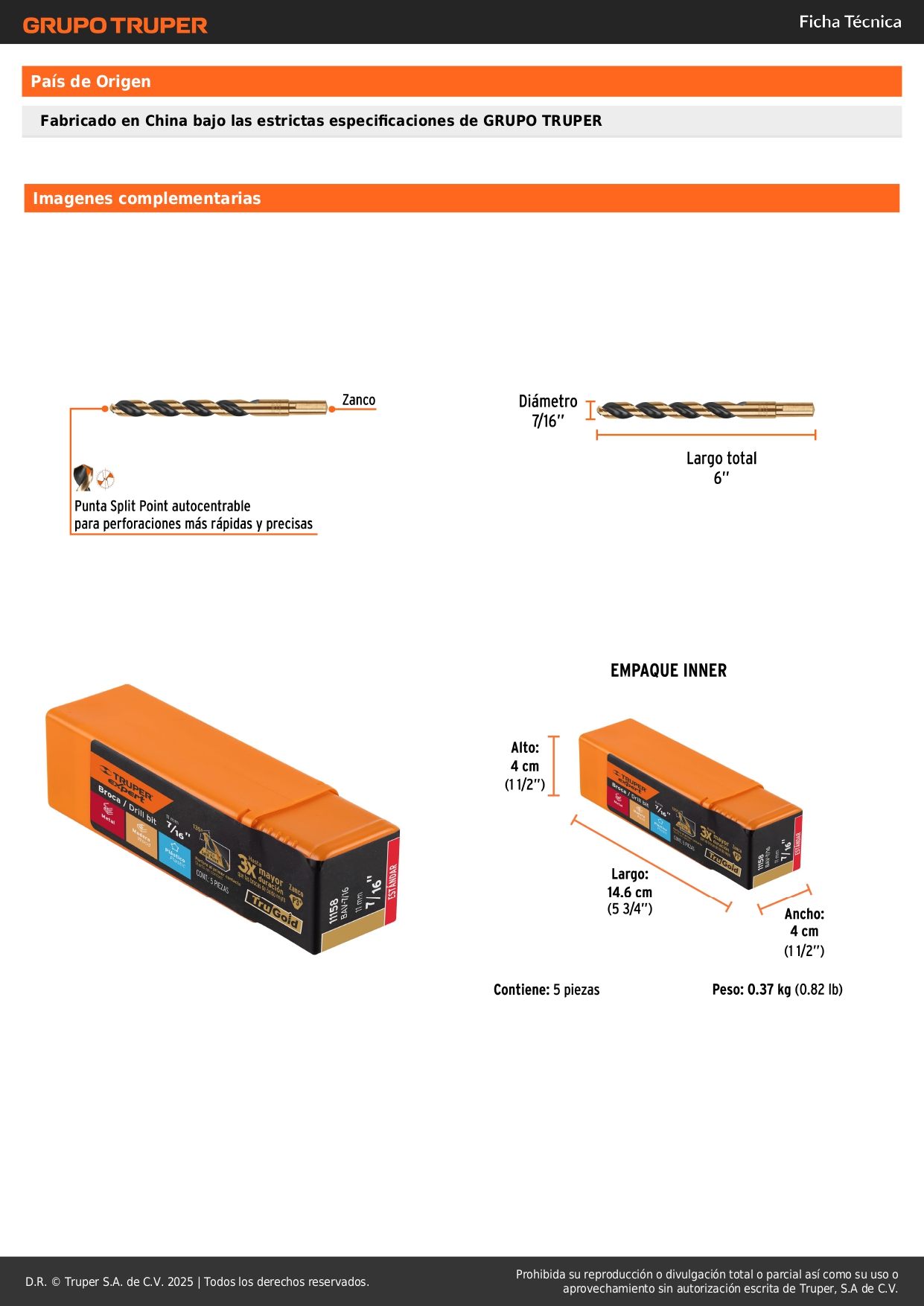 Broca HSS 7/16' Trugold para metal, Truper Expert por unidad