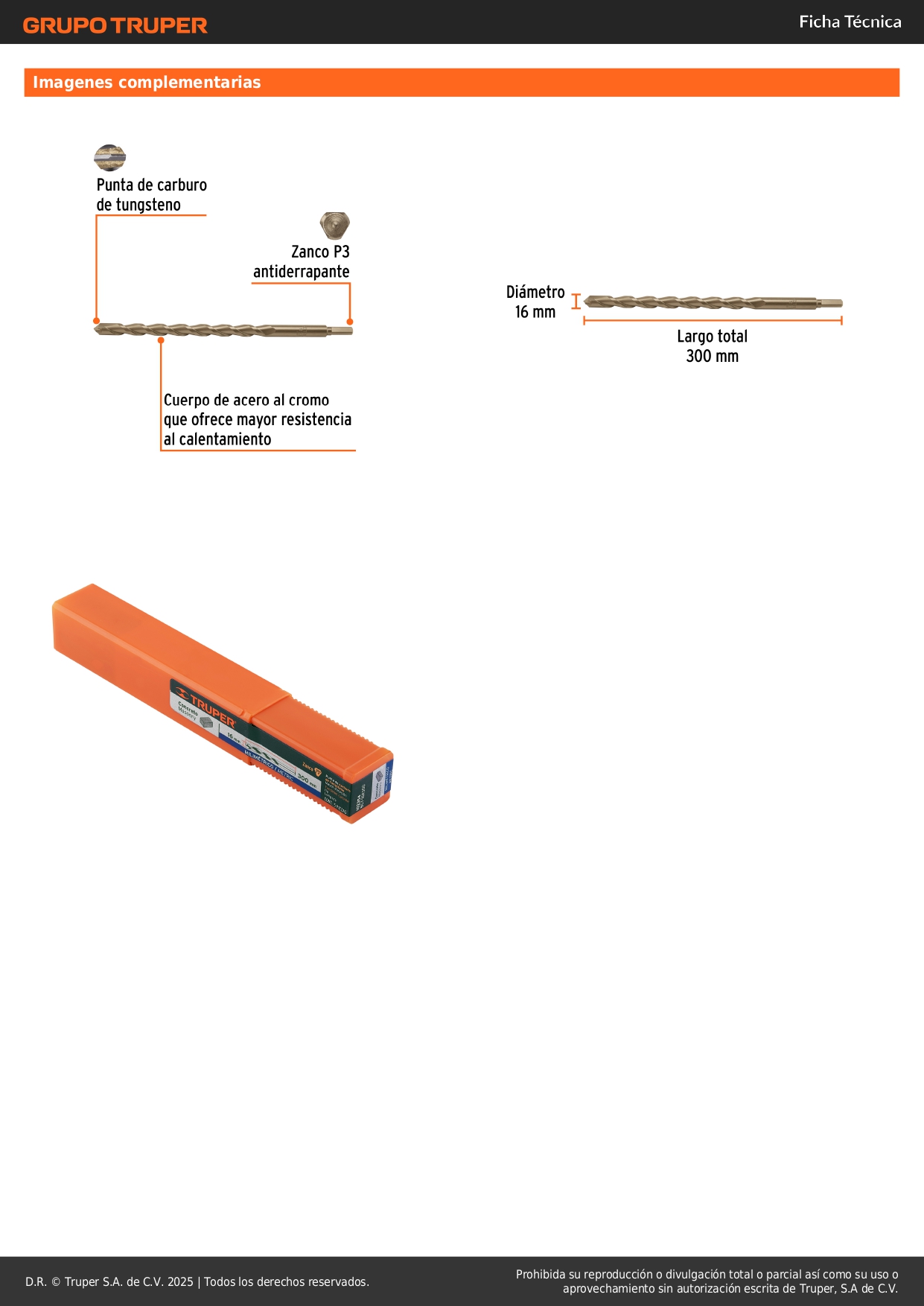 Broca para concreto 16 x 300 mm, Truper por unidad