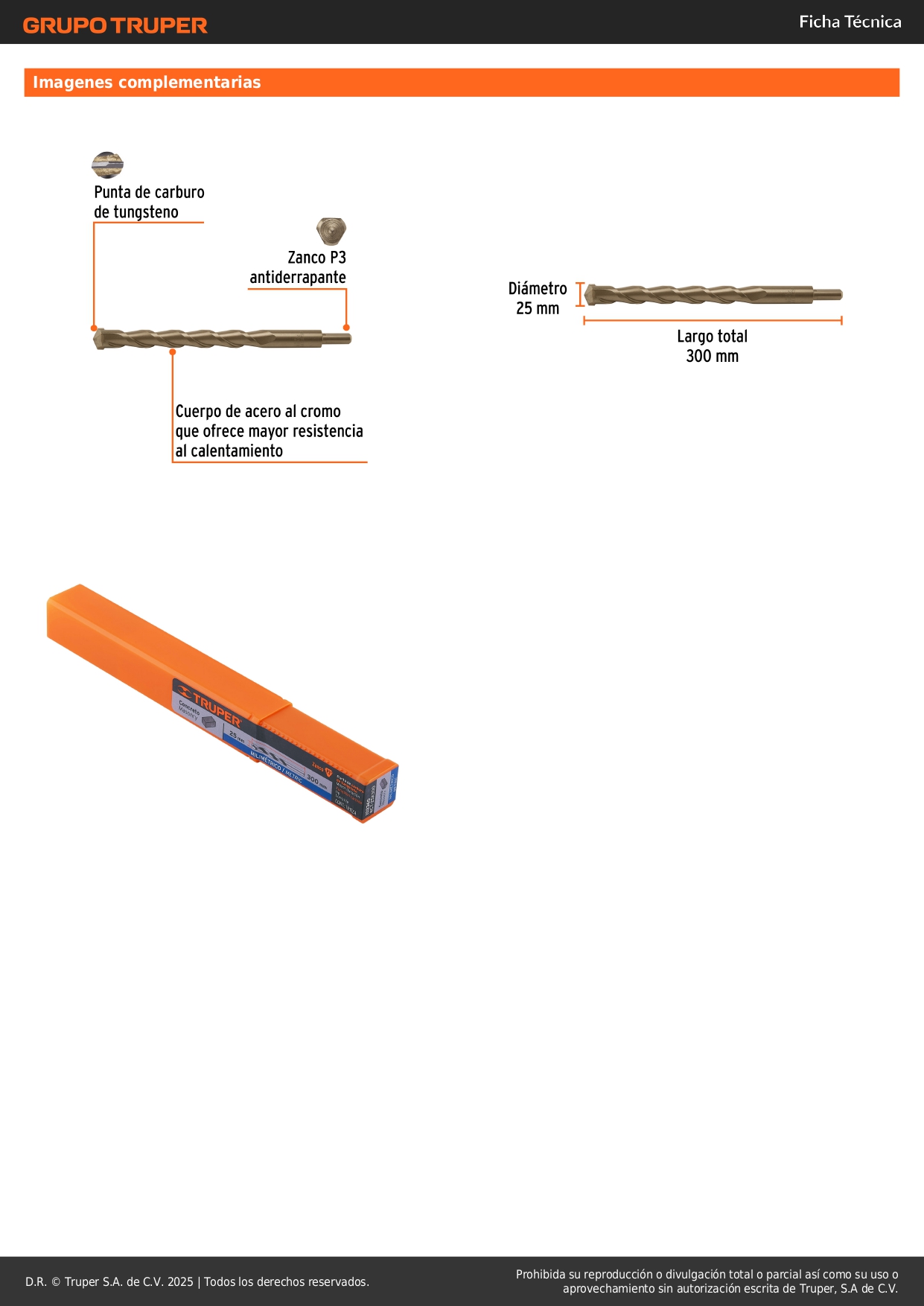 Broca para concreto 25 x 300 mm, Truper