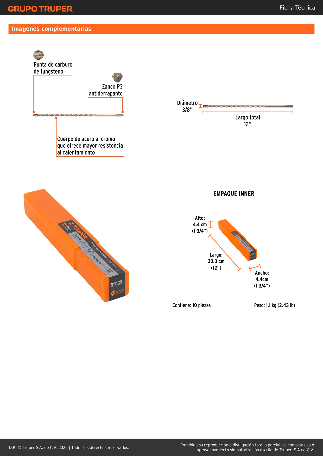 Broca para concreto de 3/8 x 12'', Truper por unidad