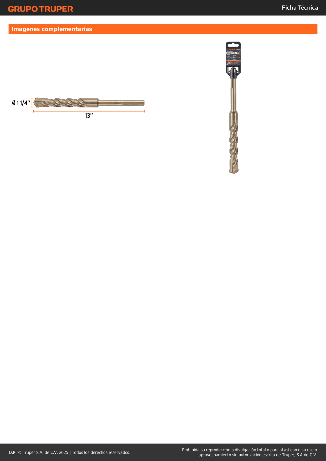 Broca SDS Ma x de 1-1/4 x 13´´, Truper