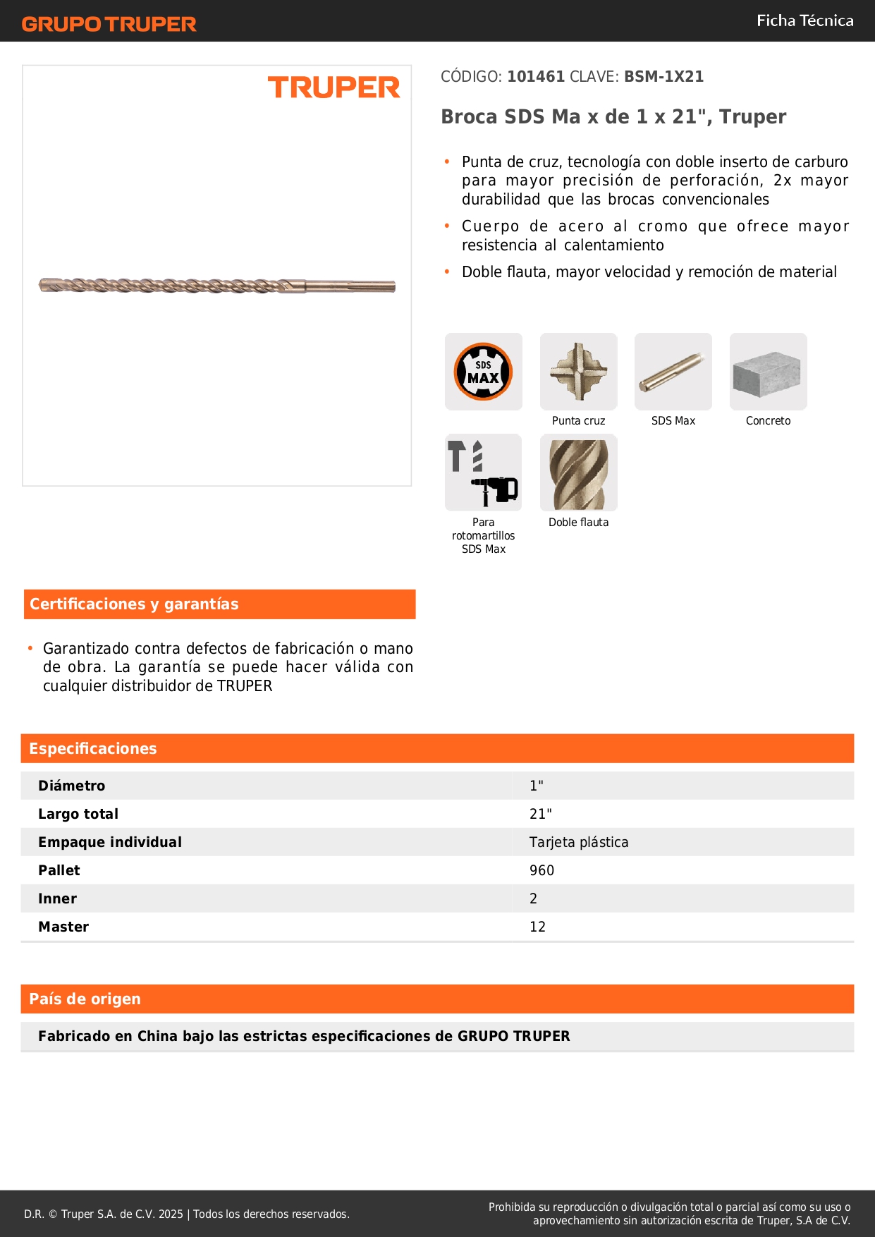 Broca SDS Ma x de 1 x 21´´, Truper