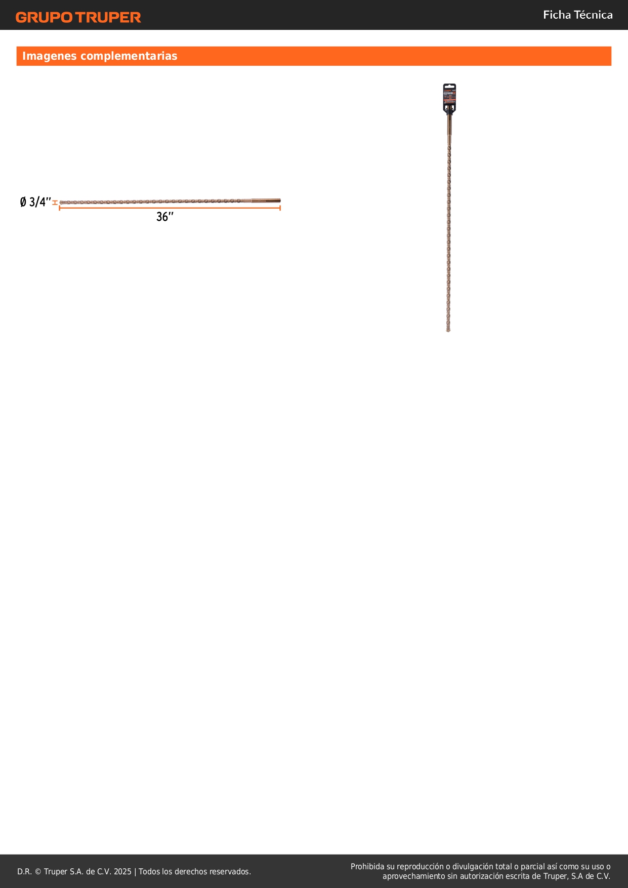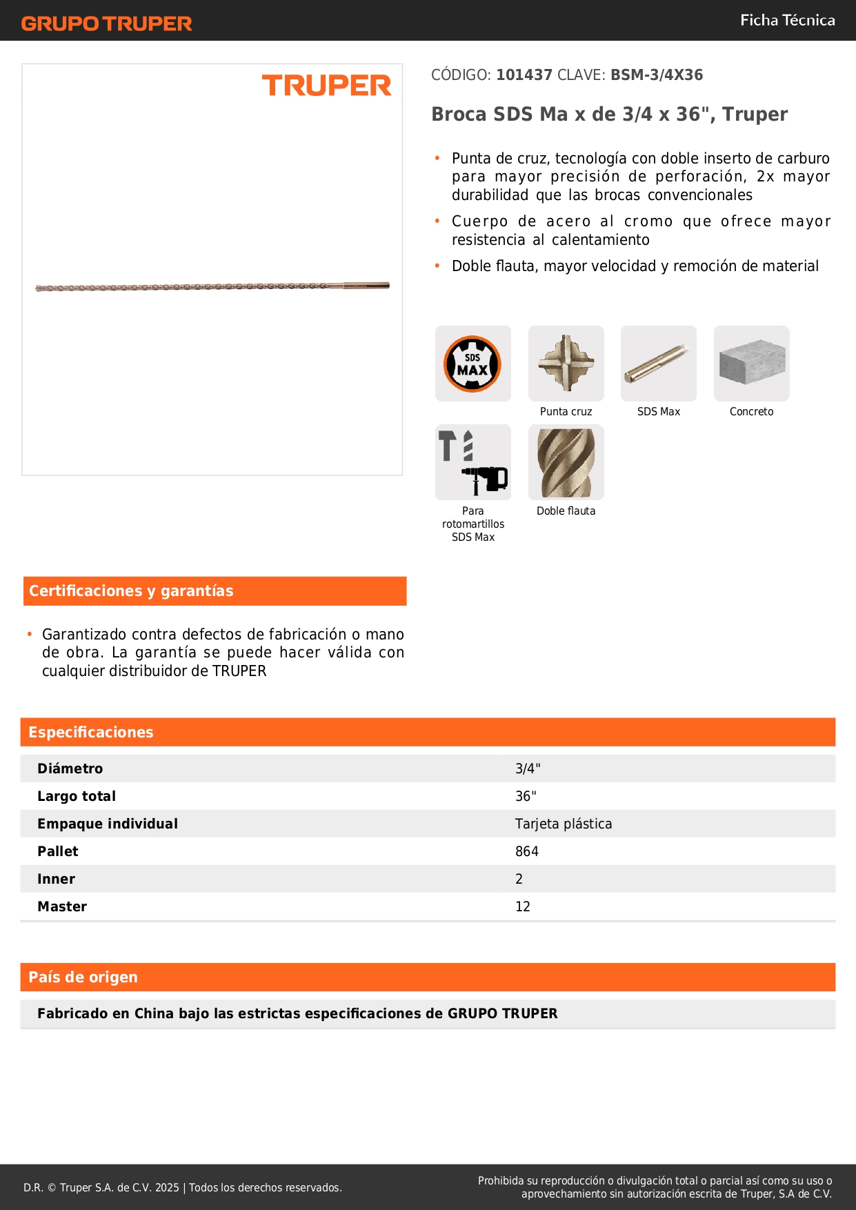Broca SDS Ma x de 3/4 x 36´´, Truper