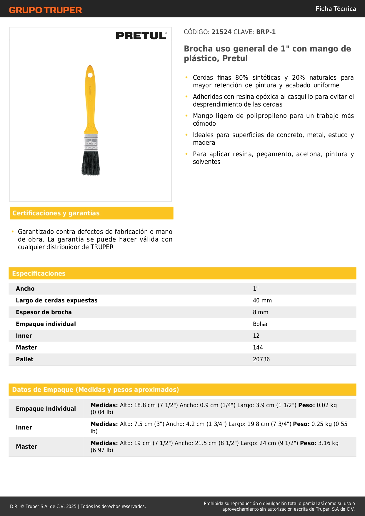 - Espesor de brocha: 8 mm.