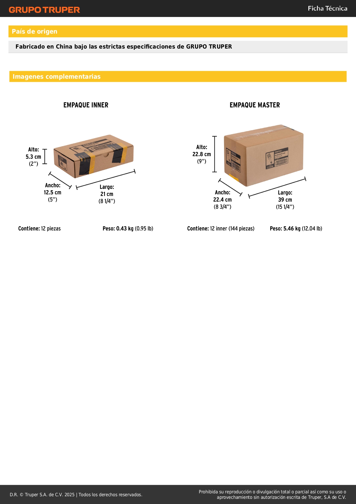 - Espesor de brocha: 11 mm.
