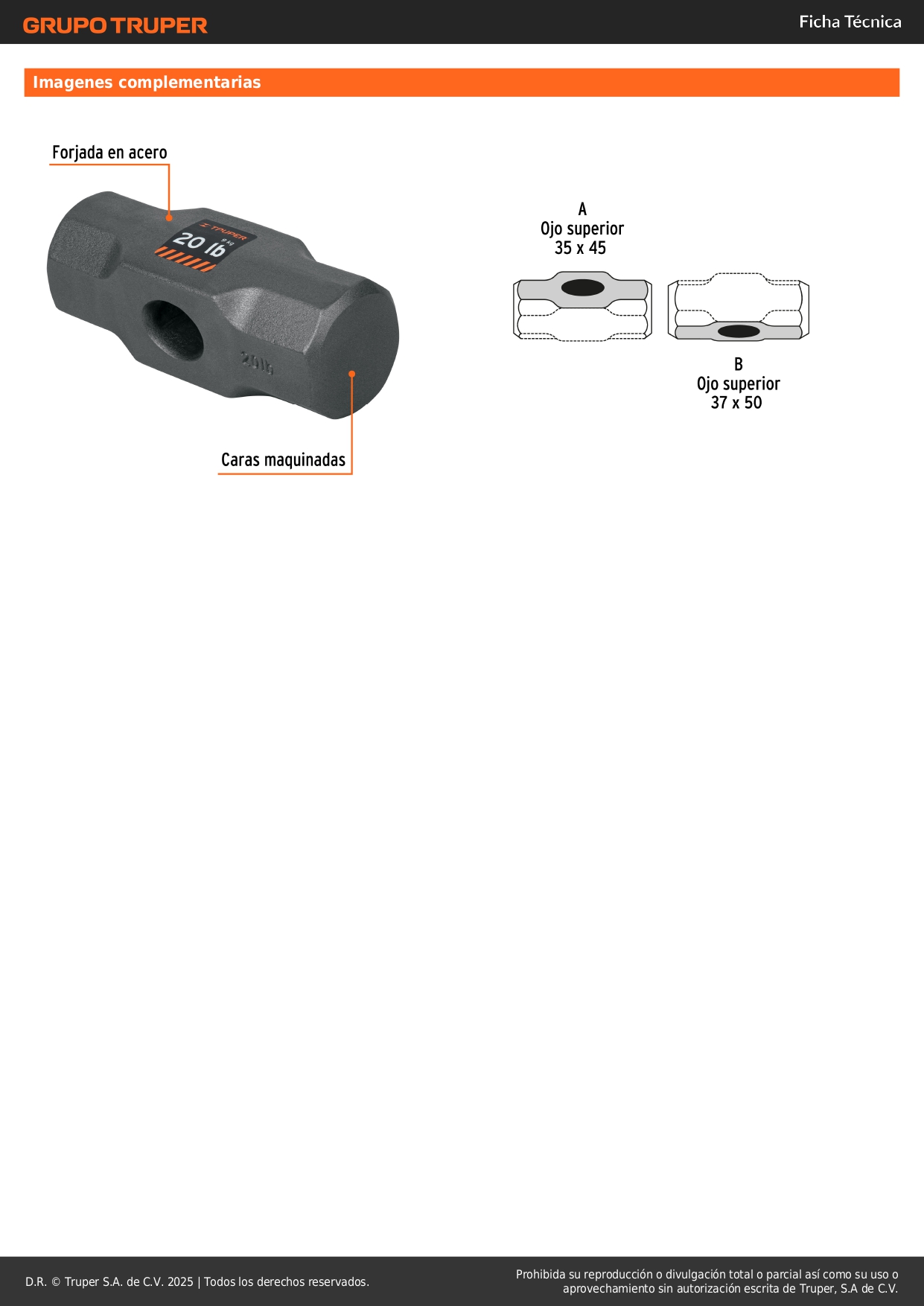 Cabeza de comba octagonal de 20 lb, Truper Stock por sucursal Stock por sucursal S/ 107.20 cantidad Agregar al carro Avísame cuando llegue -Cabeza forjada de acero con caras maquinadas-Ideal para trabajos de golpeo y demolición