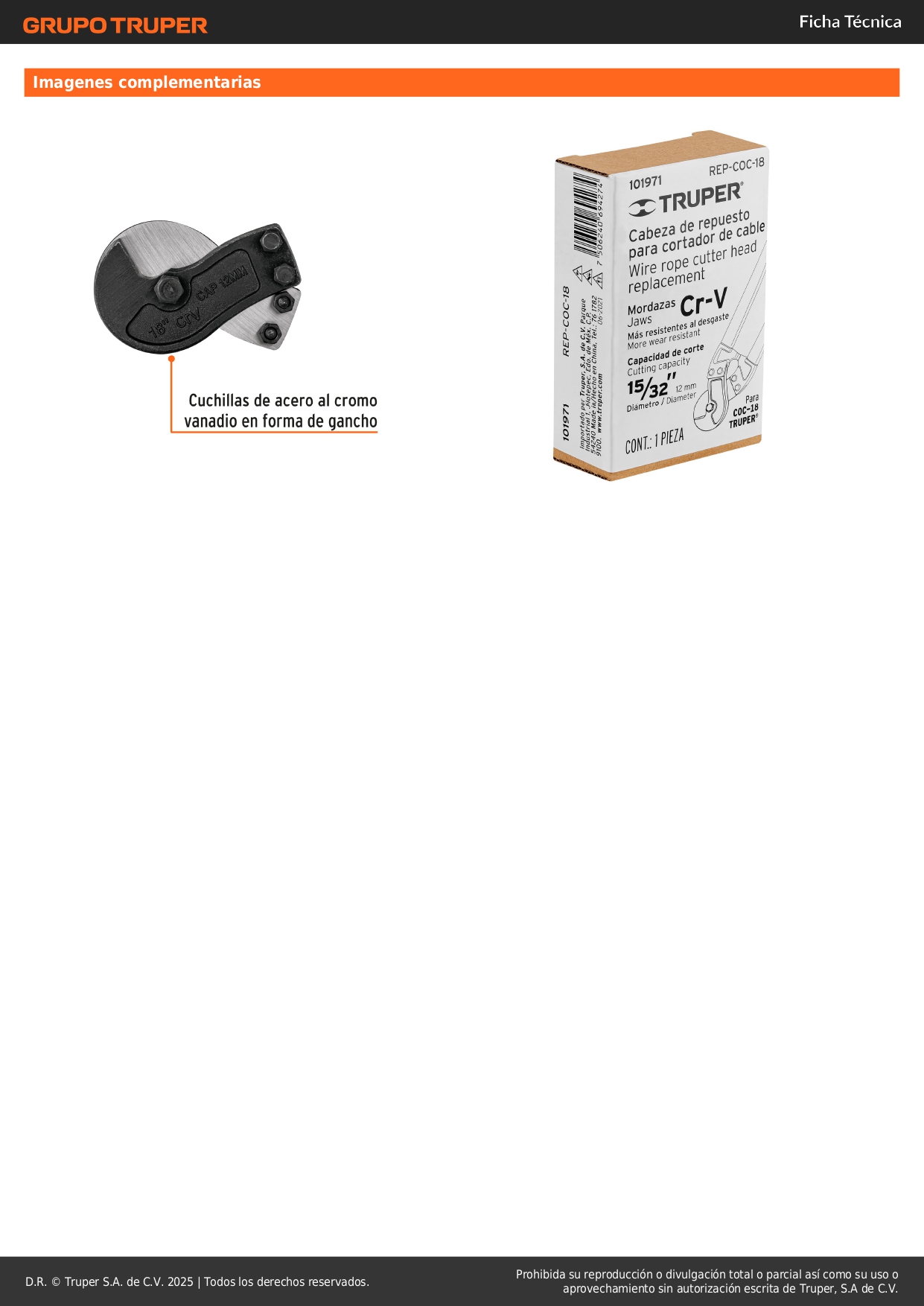 • Repuesto para cortador modelo COC-18, marca Truper®