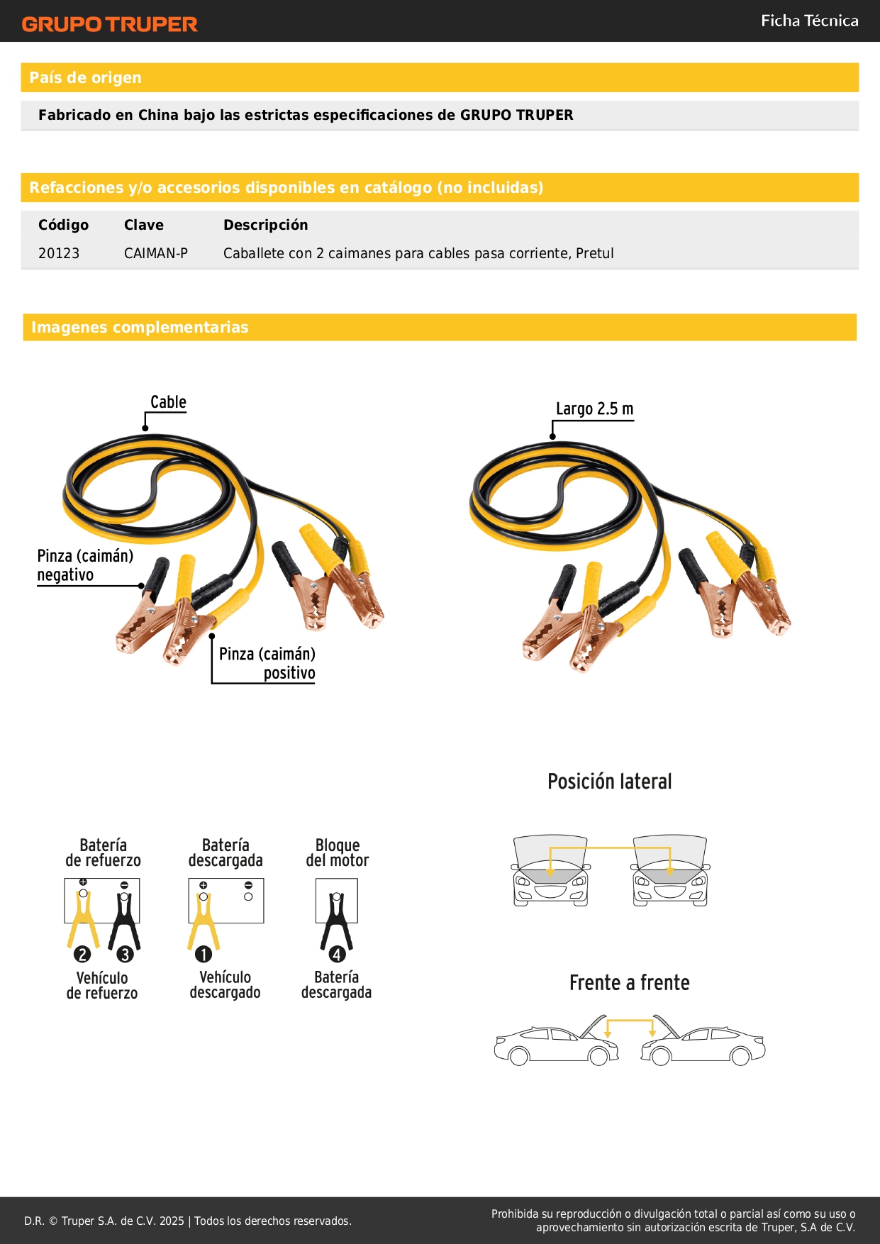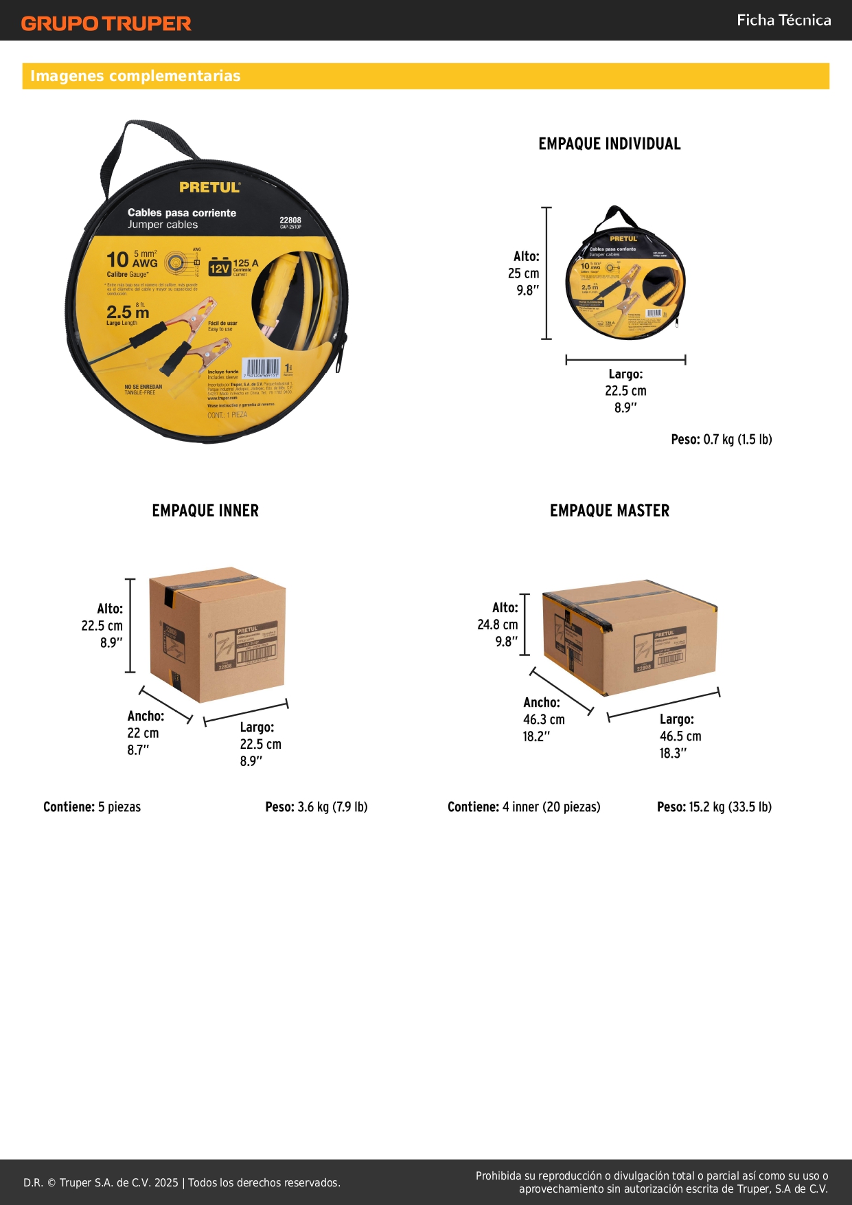 Cables pasa corriente 2.5 m 125 a 10 AWG con funda Pretul Stock por sucursal Stock por sucursal S/ 27.00 cantidad Agregar al carro Avísame cuando llegue Mayor flexibilidad para facilidad de uso.Fundas para fácil transporte y almacenamiento.