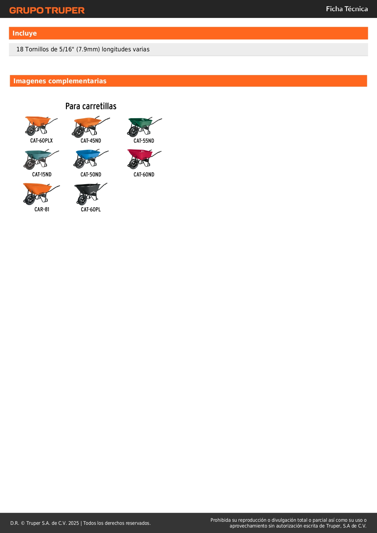Caja con llanta reforzada y accesorios para carretilla Truper