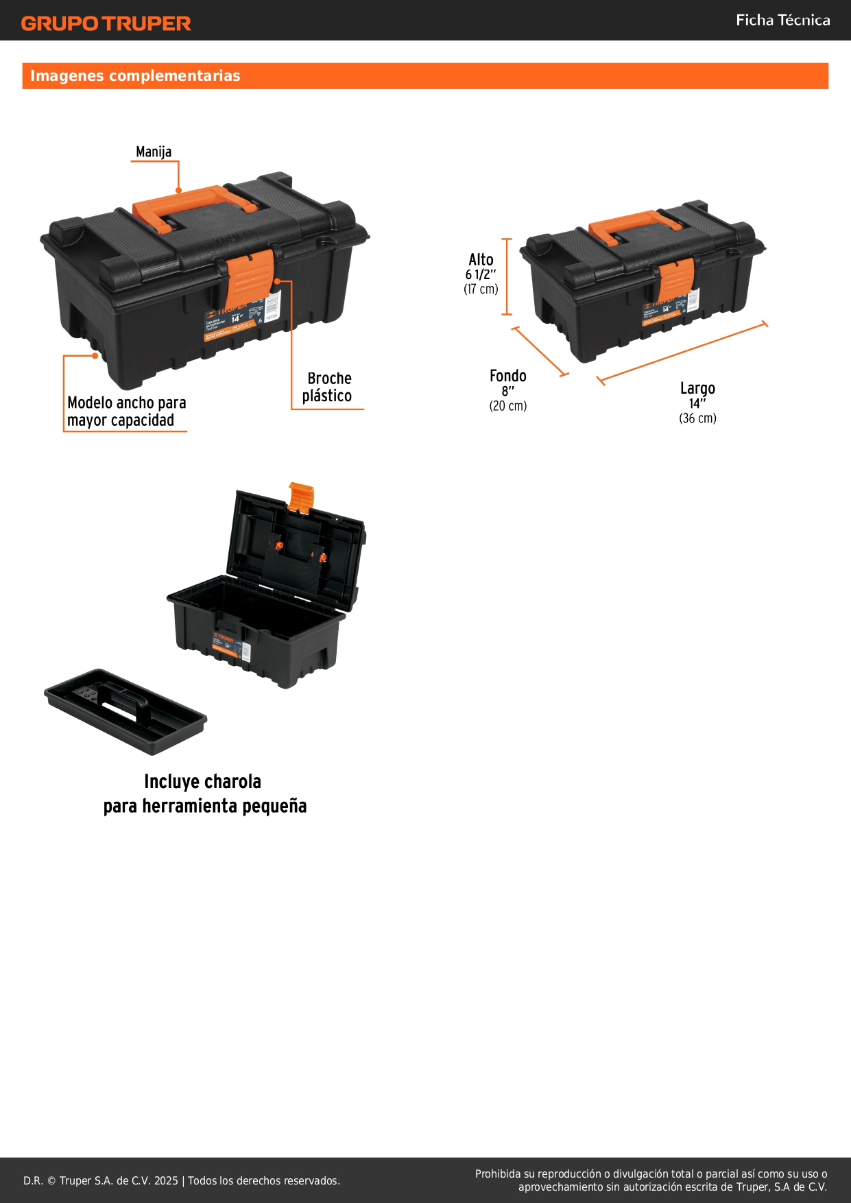 Caja para herramienta de 14" sin compartimentos, TRUPER