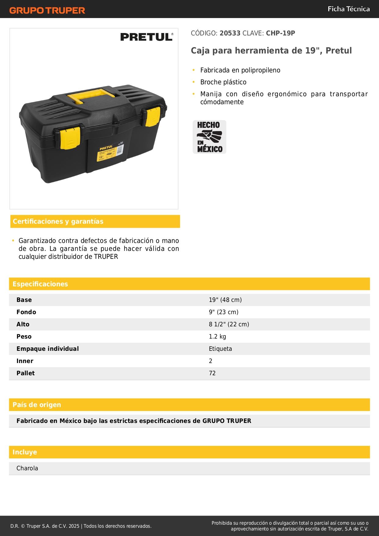 Caja para herramienta de 19", Pretul