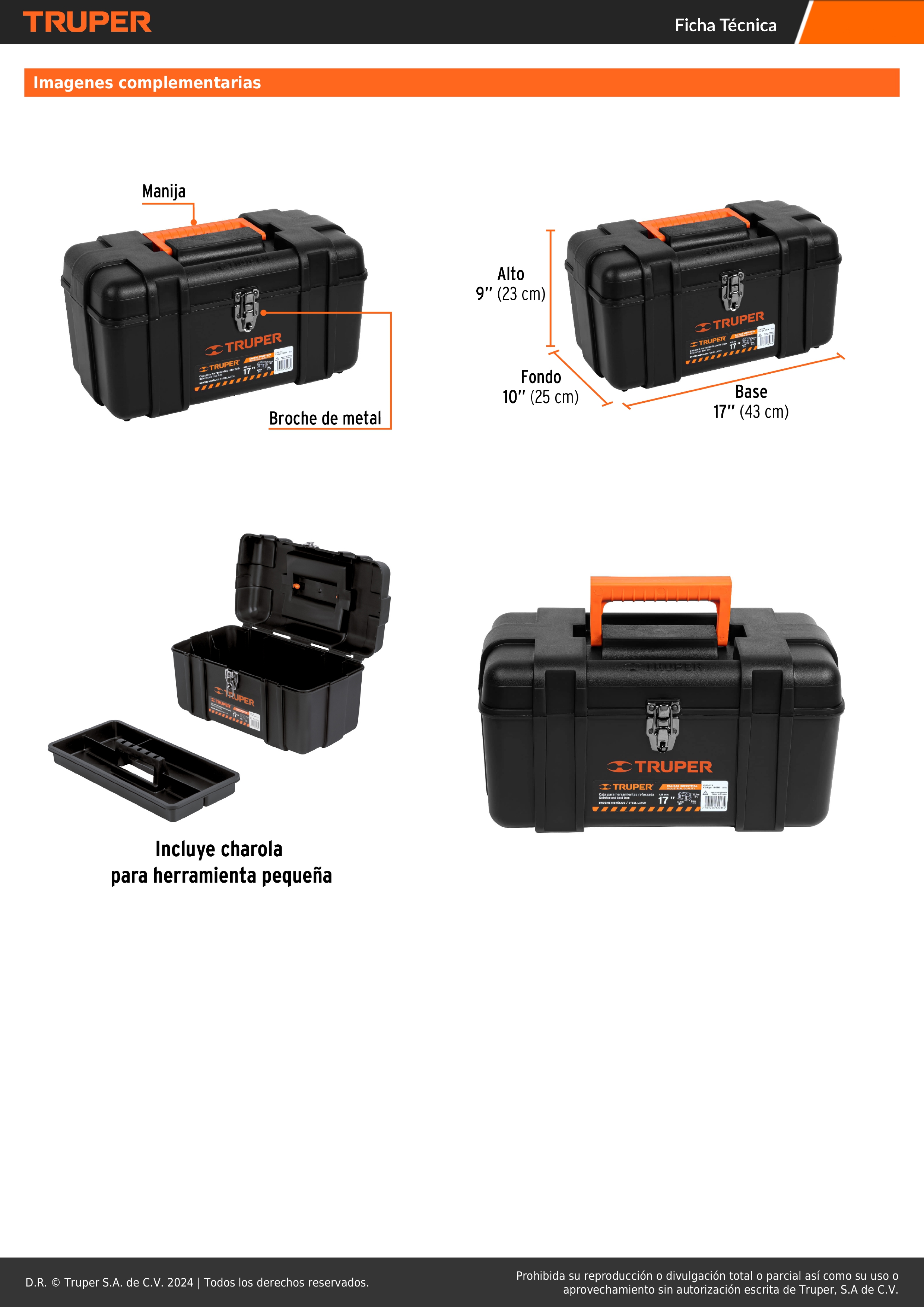 - Broche metálico con orificio para candado, que brinda mayor seguridad al contenido de la caja