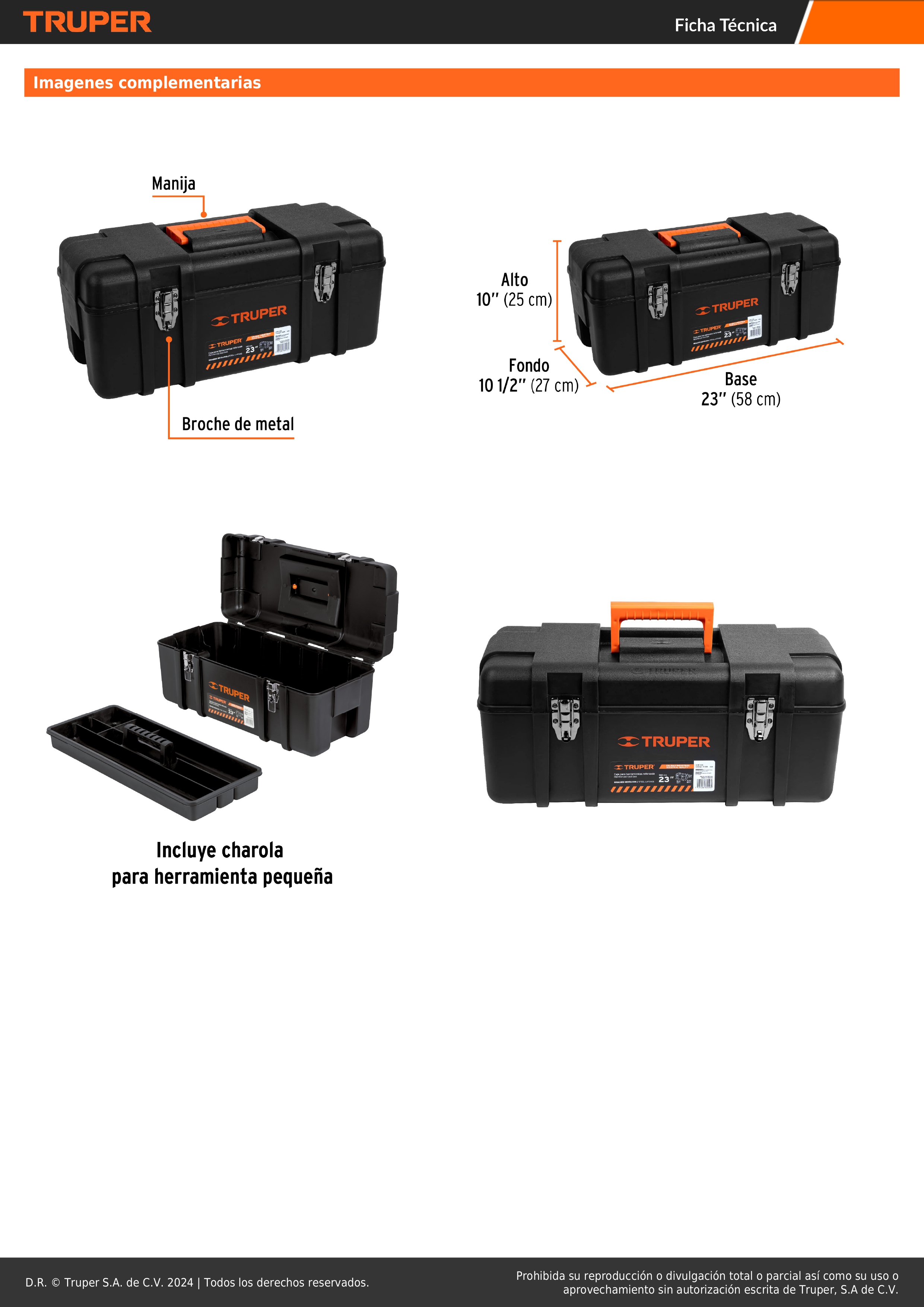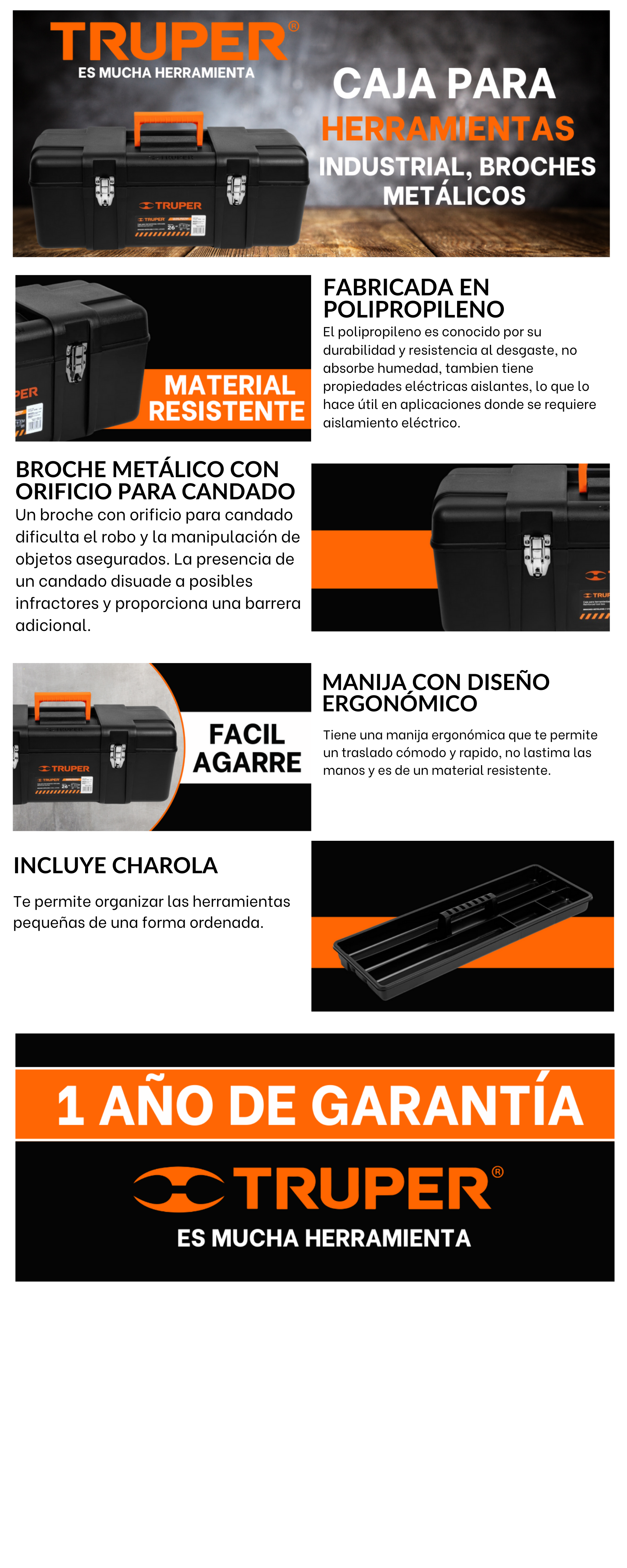 • Broche metálico con orificio para candado, que brinda mayor seguridad al contenido de la caja