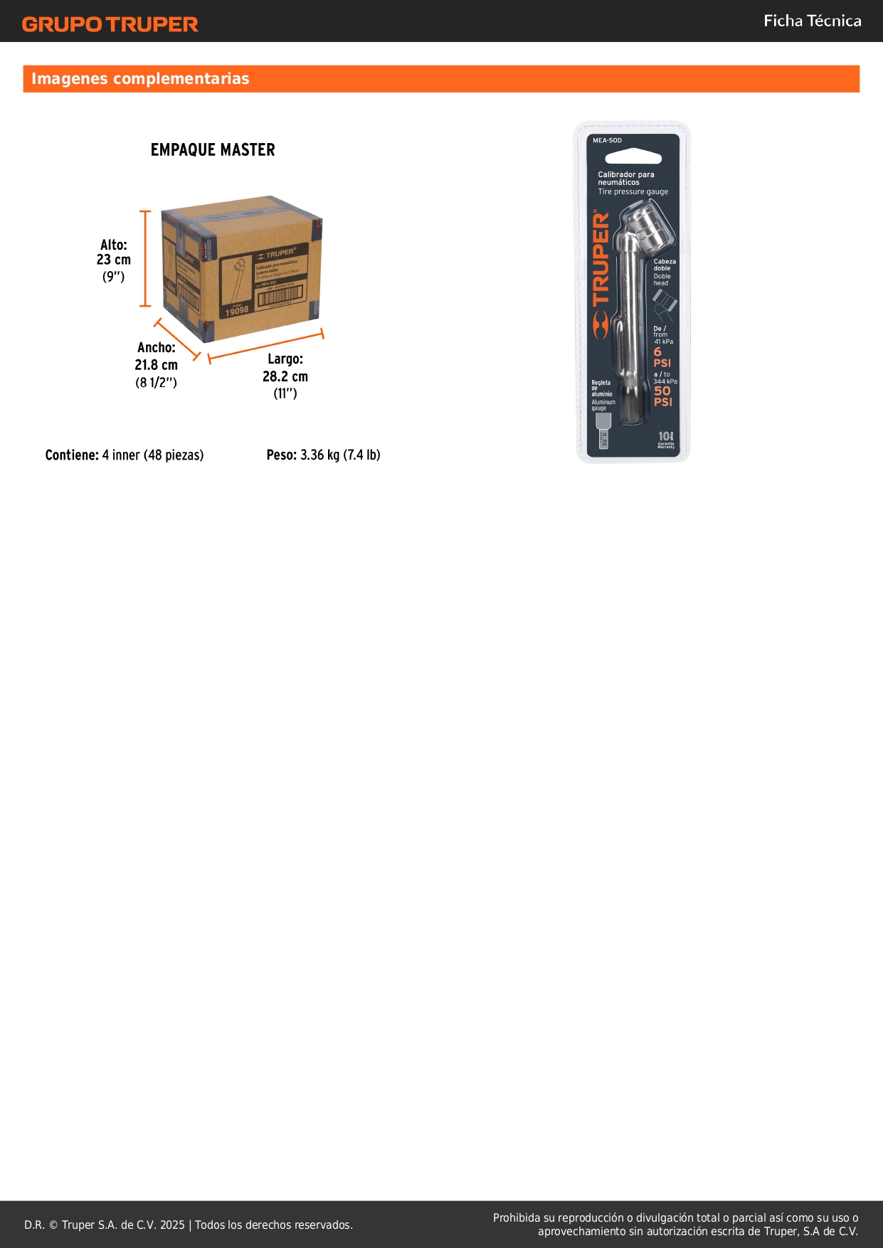 Calibrador para neumáticos 50 PSI cabeza doble Truper