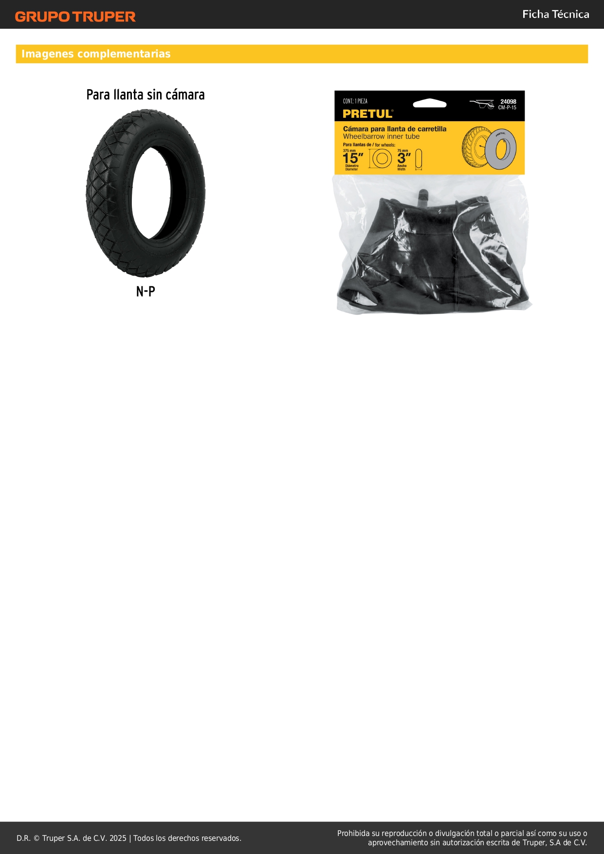 Camara para llanta de carretilla 14" Pretul Stock por sucursal Stock por sucursal S/ 8.50 cantidad Agregar al carro Avísame cuando llegue Fabricada de hule natural.Cámaras solas, no incluye llanta.