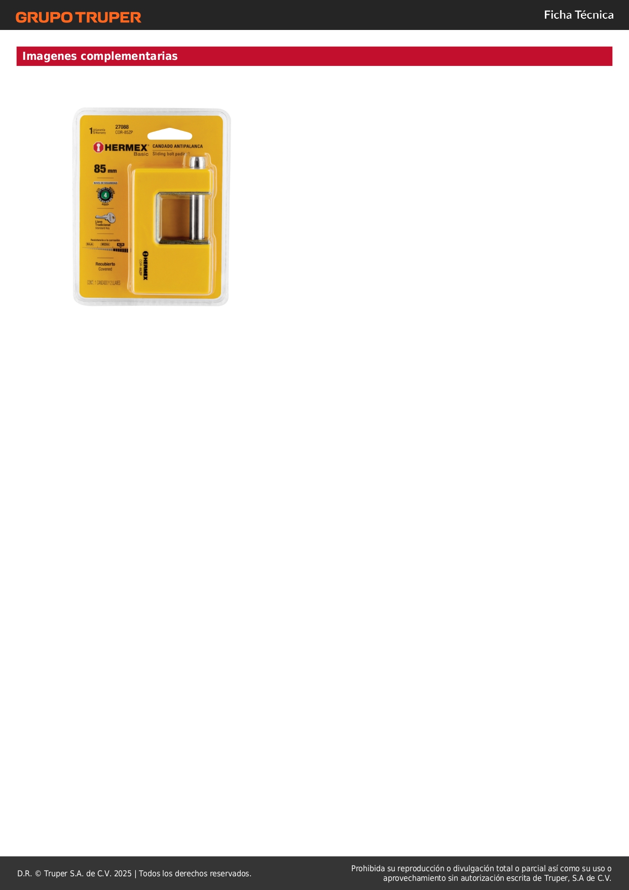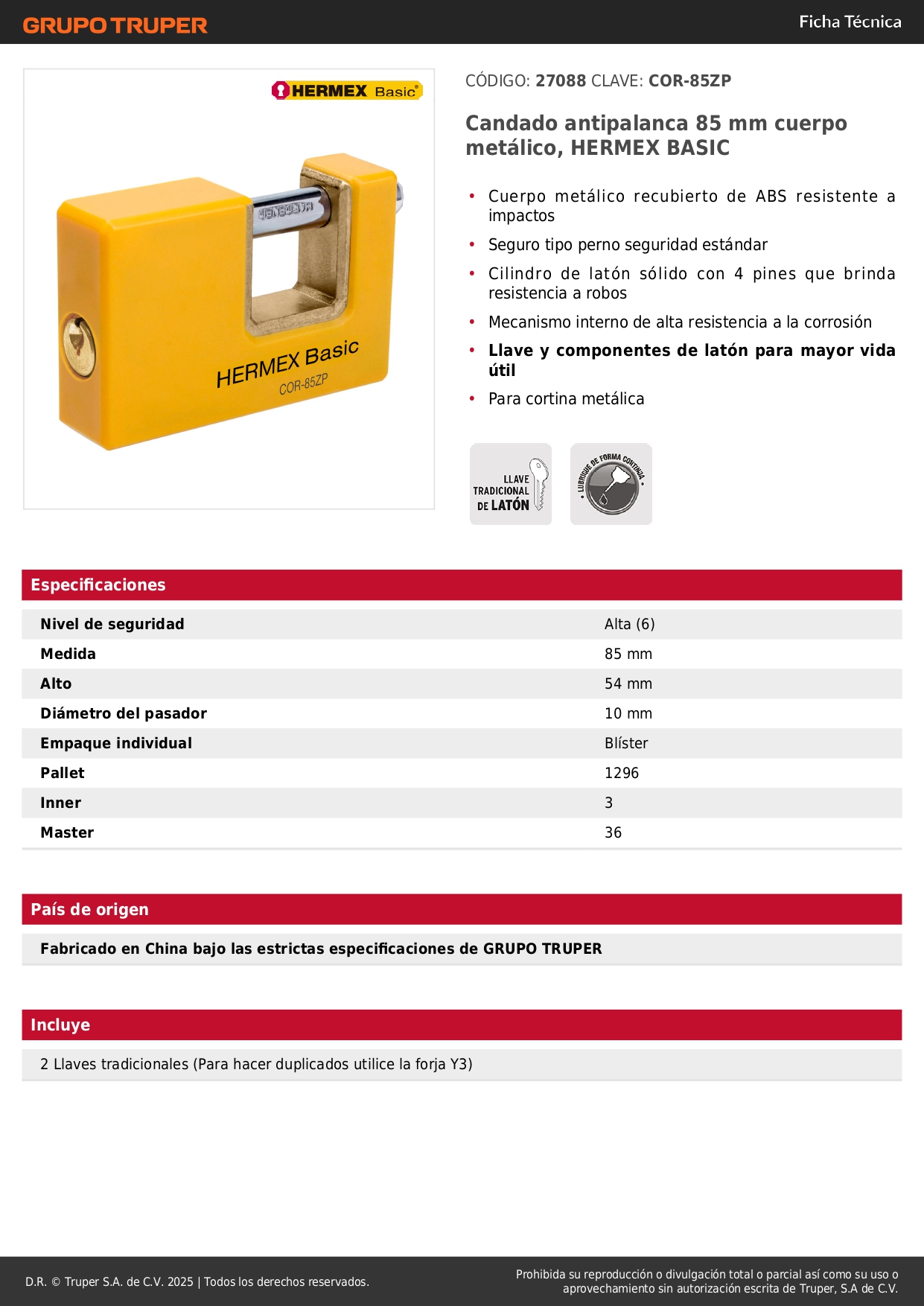 Candado antipalanca 85 mm cuerpo metálico, Hermex Basic