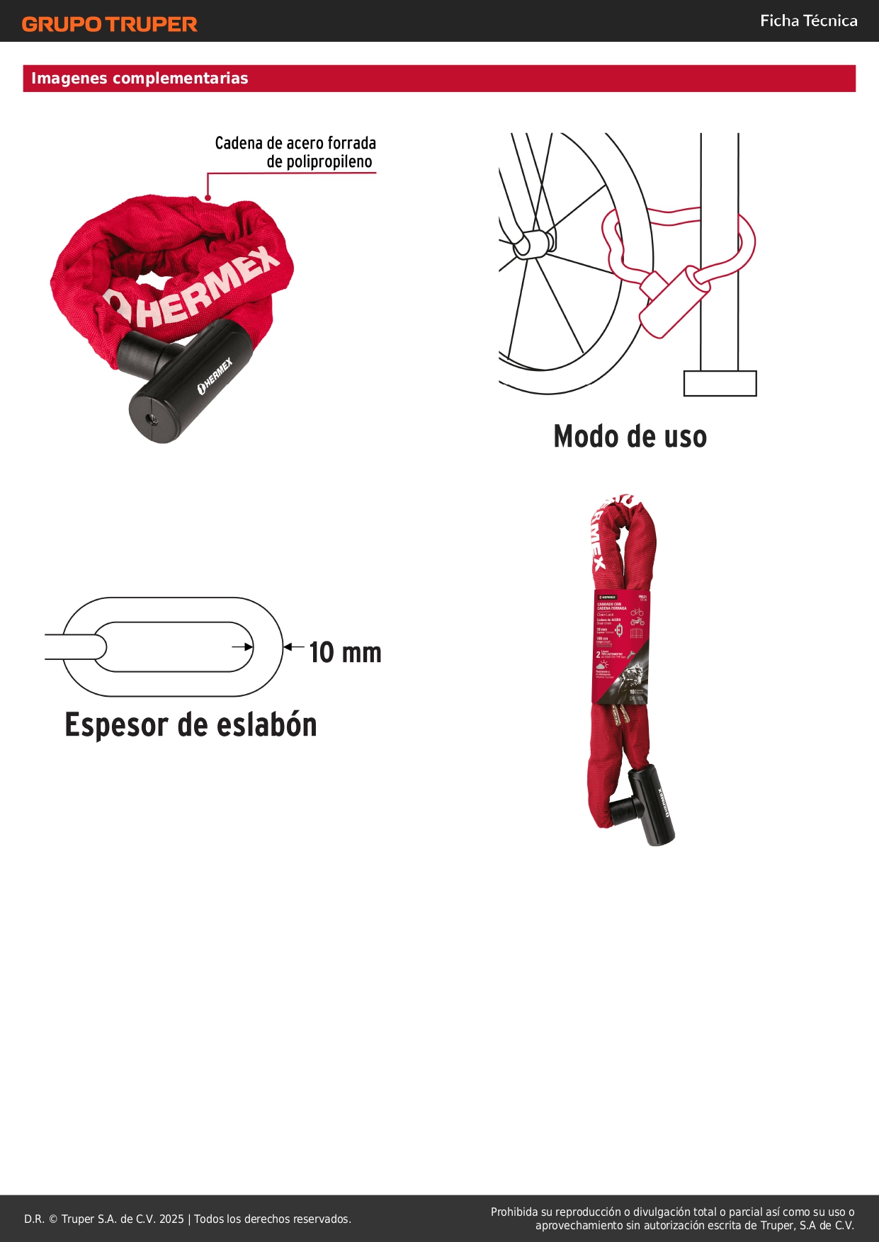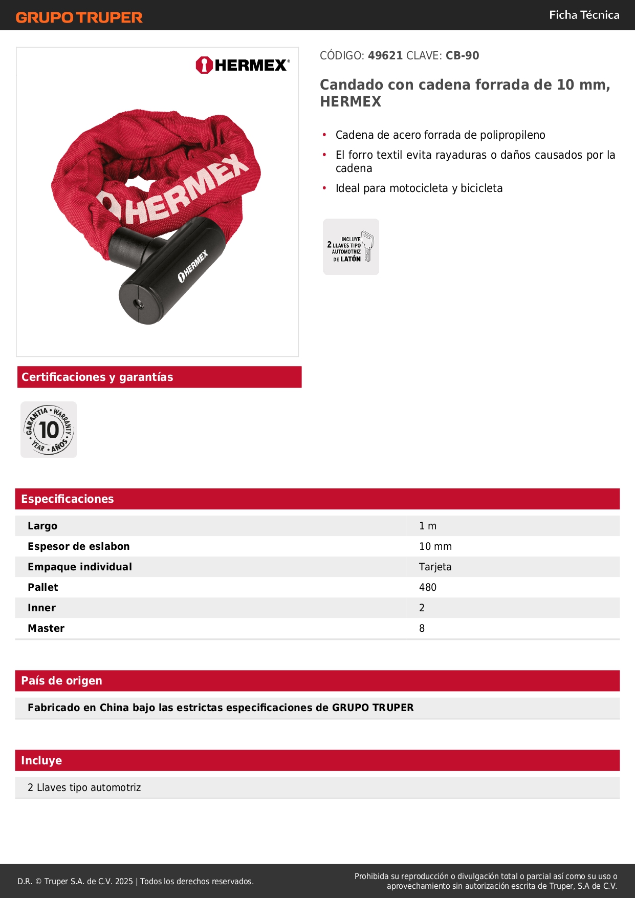 Candado con cadena forrada de 10 mm Hermex