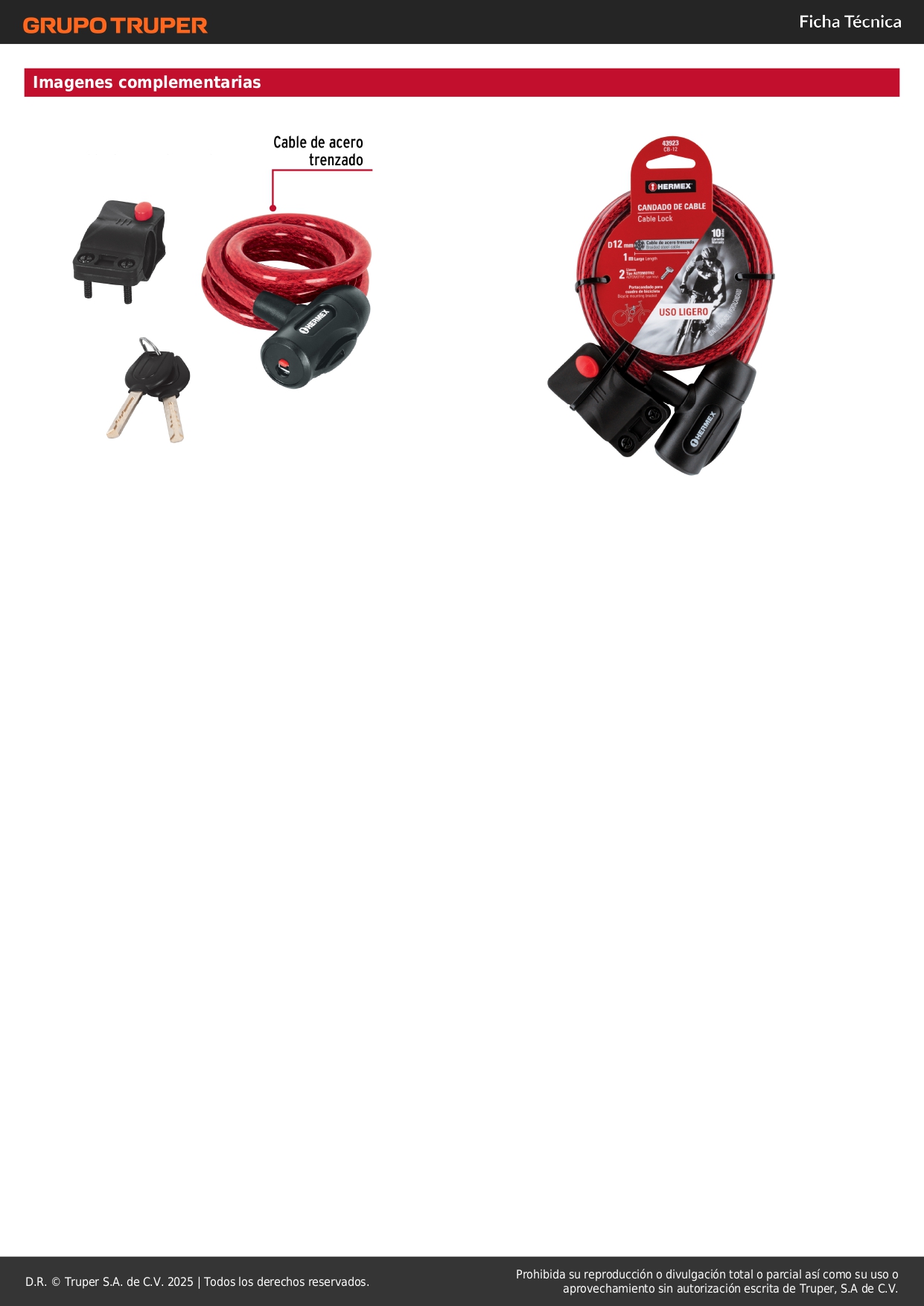Candado de cable con llave 12 mm x 1.0 m Hermex