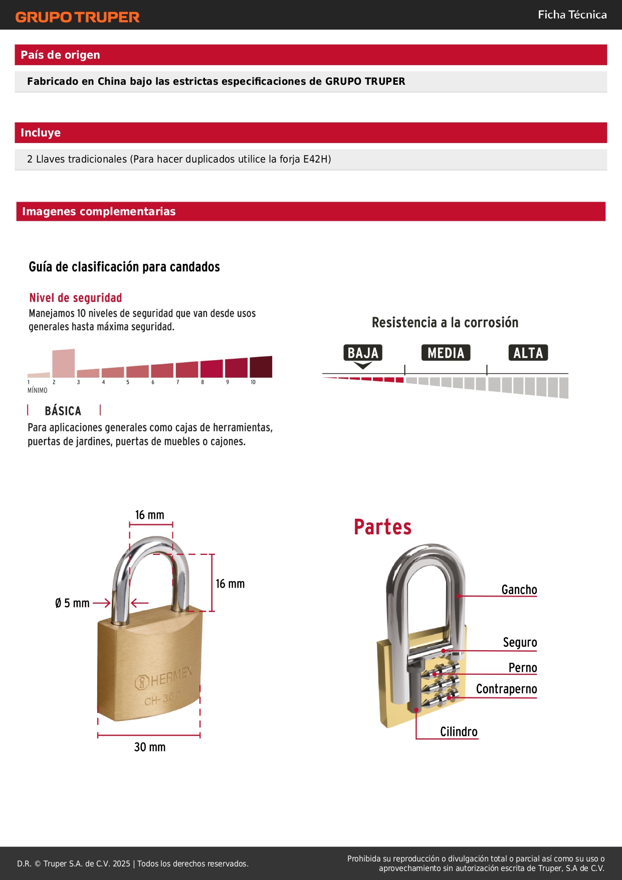 -Seguro tipo perno, seguridad estándar