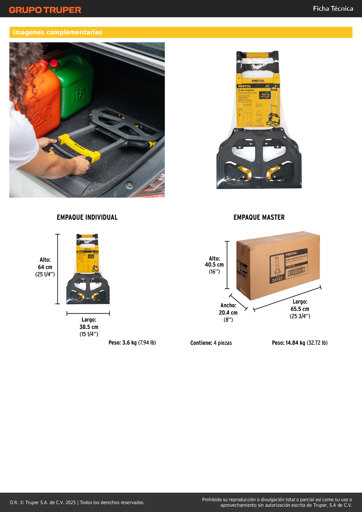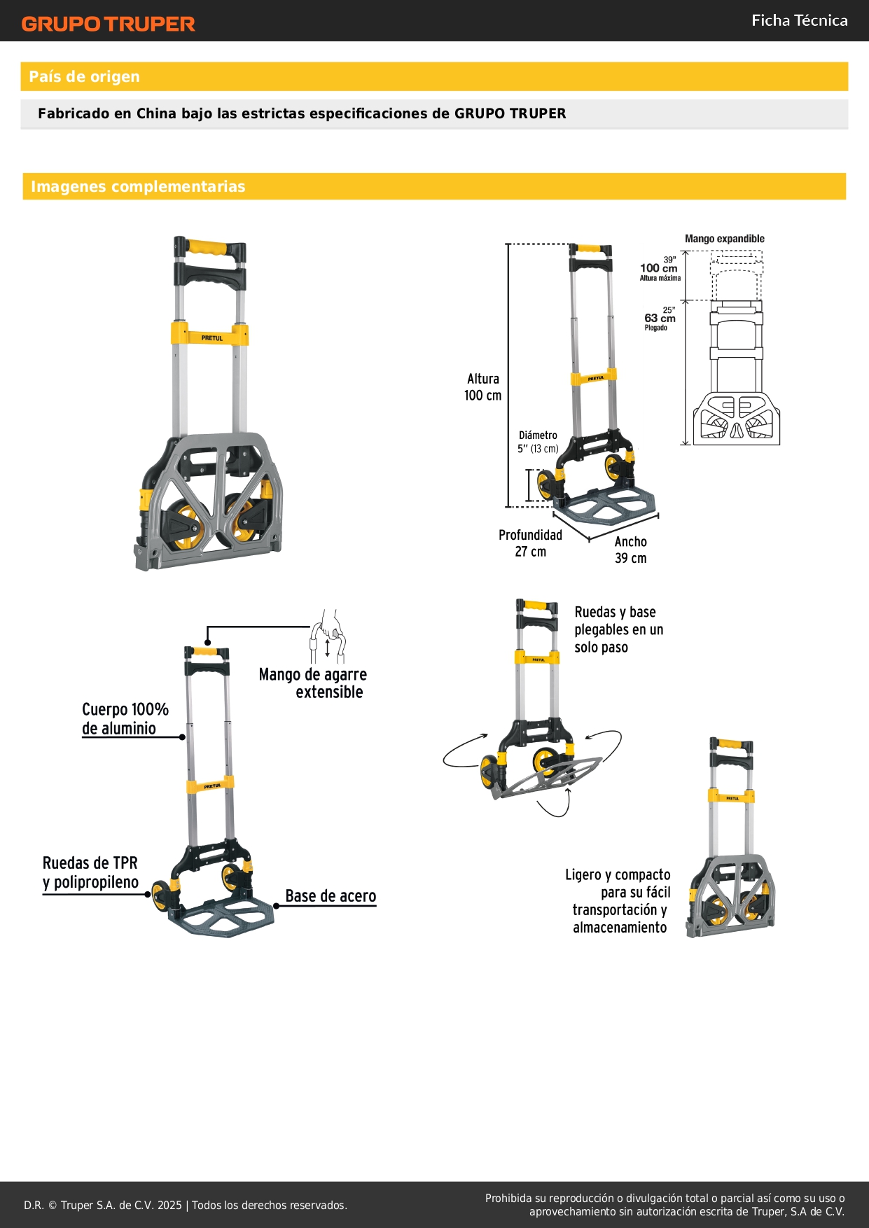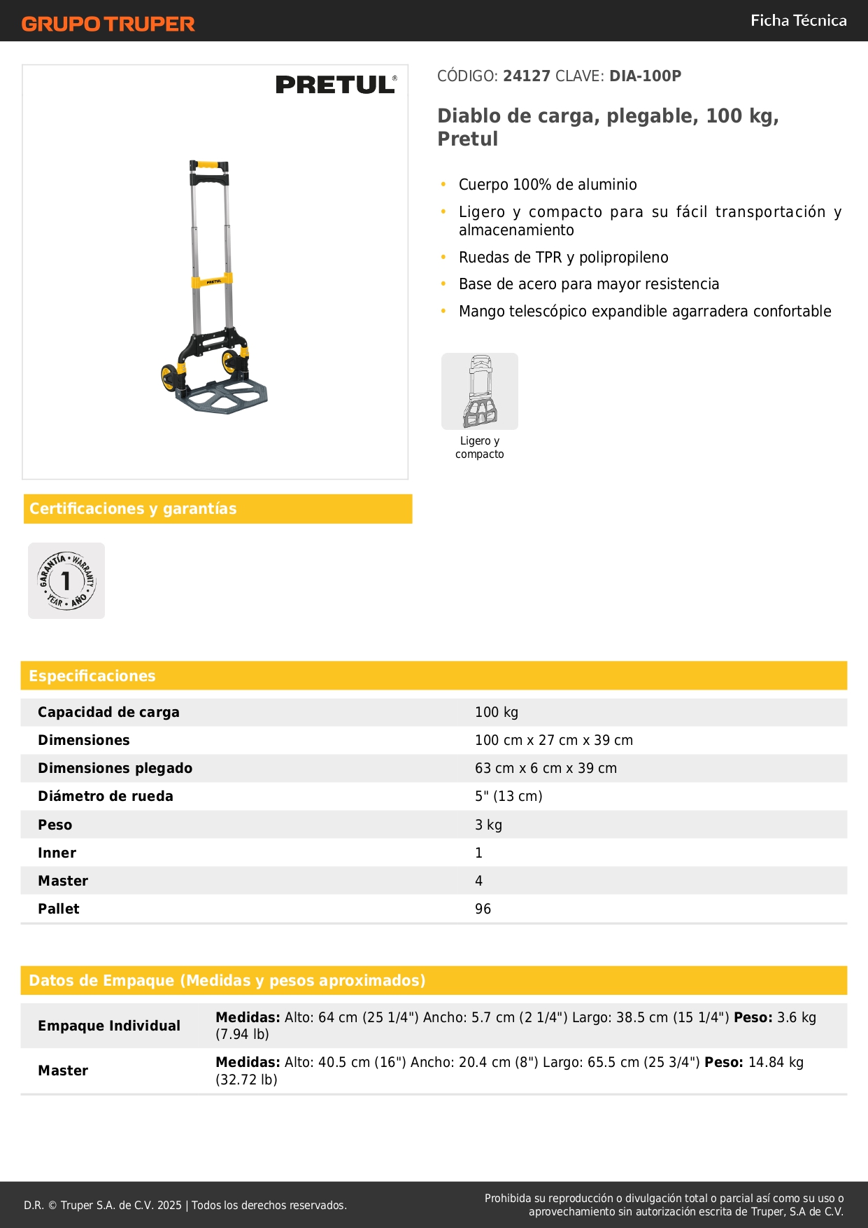• Ligero y compacto para su fácil transportación y almacenamiento