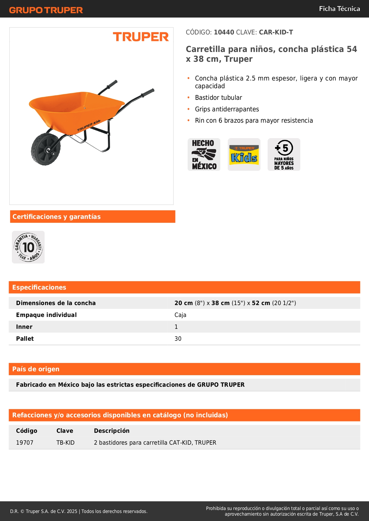 Carretilla para niños, concha plástica 54x 38 cm, Truper