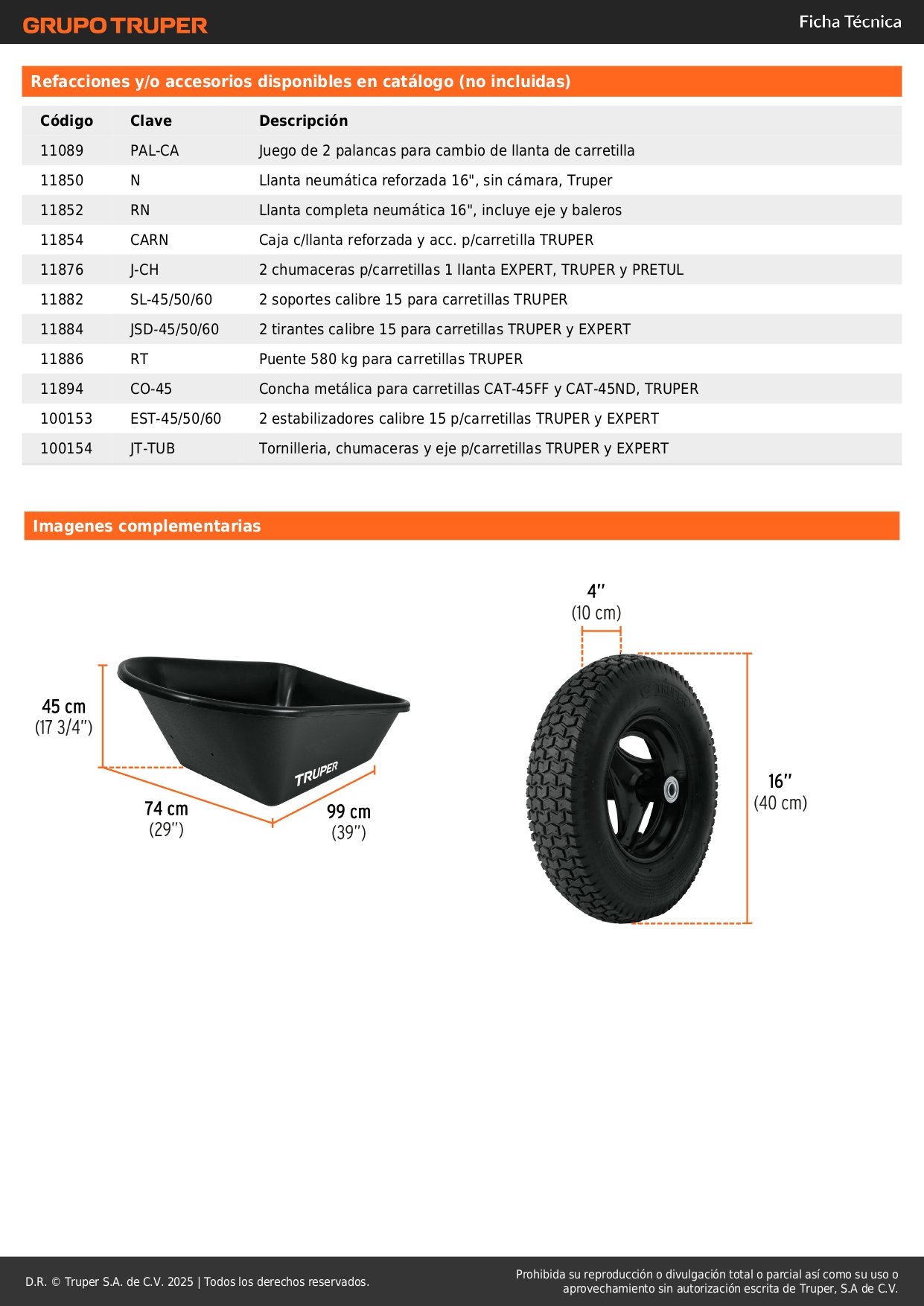 Medidas de llanta4" (10 cm) x 16" (41 cm)
